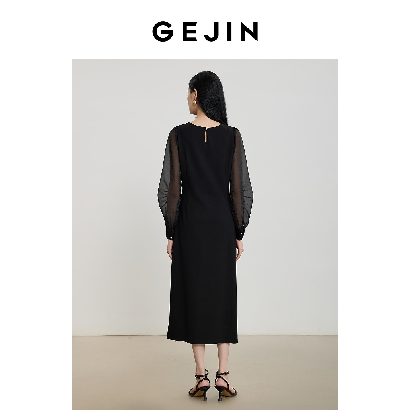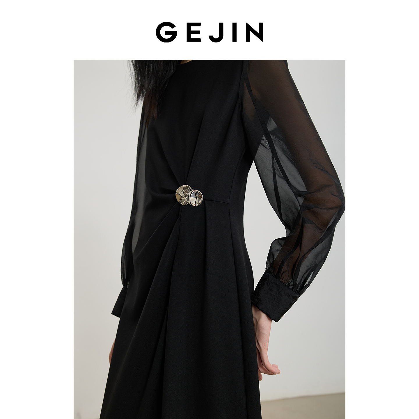 网纱长袖 中长款 连衣裙公主袖 2025秋季 黑裙 歌锦显瘦藏肉 新款 法式