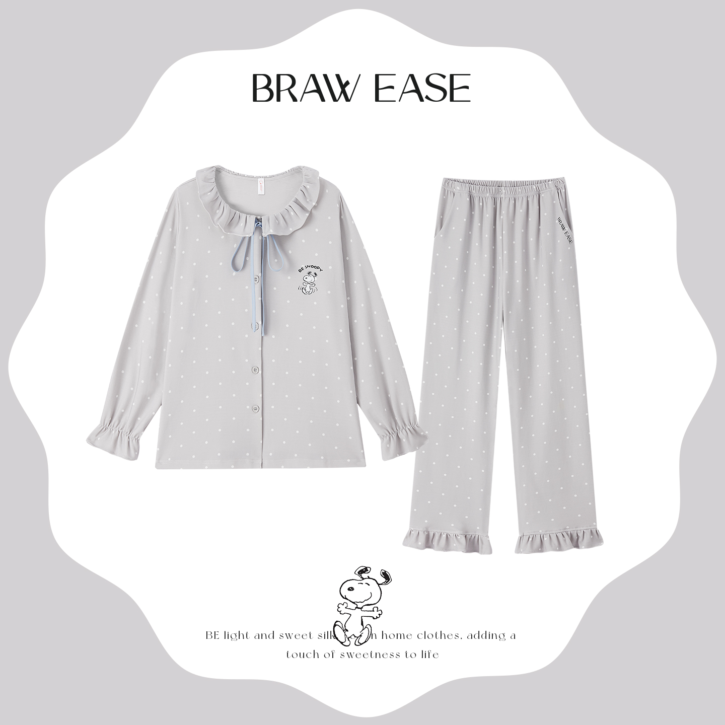 2025新款 波点木耳边春秋家居服套装 秋天 长袖 史努比纯棉睡衣女秋季