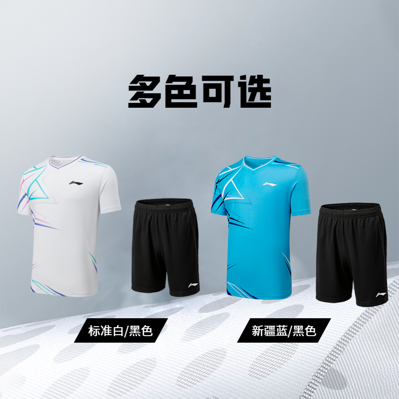 针织运动服 短裤 李宁羽毛球比赛套装 男女羽毛球系列情侣舒适短袖