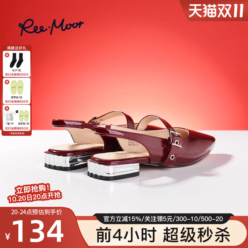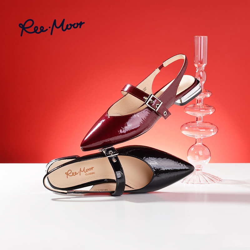 女外穿平底单鞋 REEMOOR睿慕2025夏季 复古尖头一字带凉鞋 法式 新款