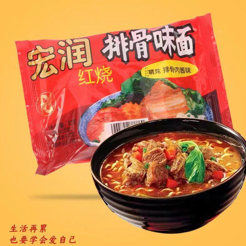 宏润方便面宏润红烧排骨面泡面速食面排骨面62gX10包80后美食泡面