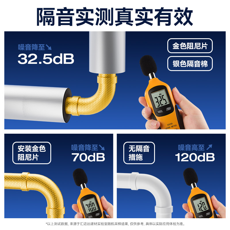下水管道隔音棉包卫生间排水管阻尼片110管道材料自粘吸音棉噪音