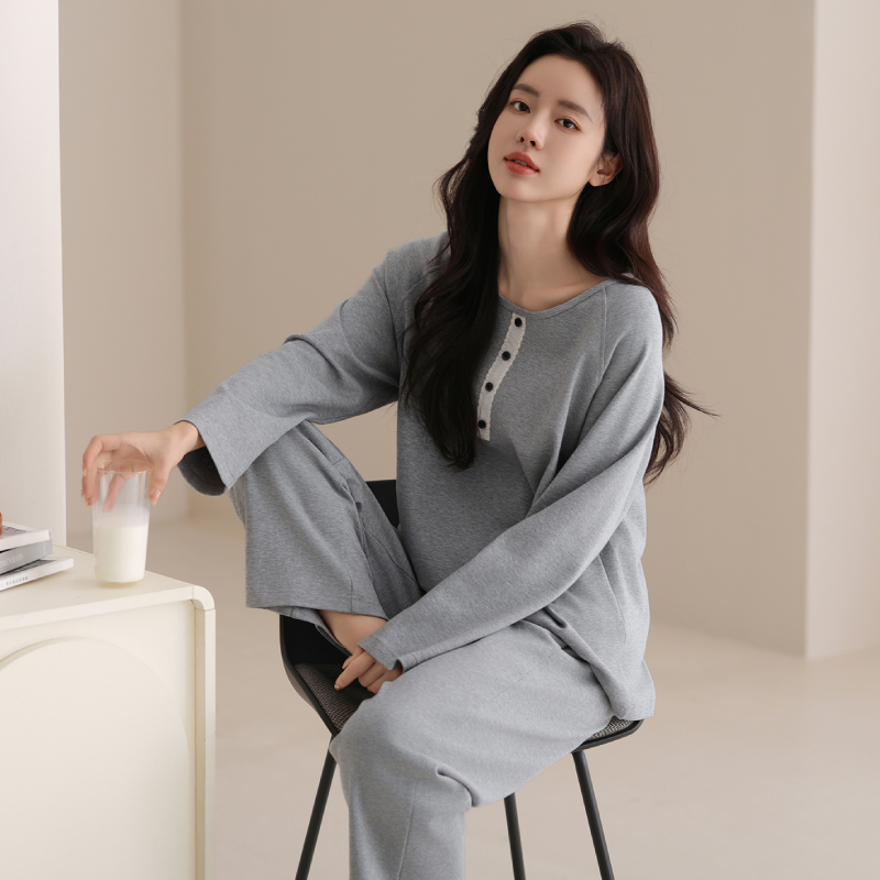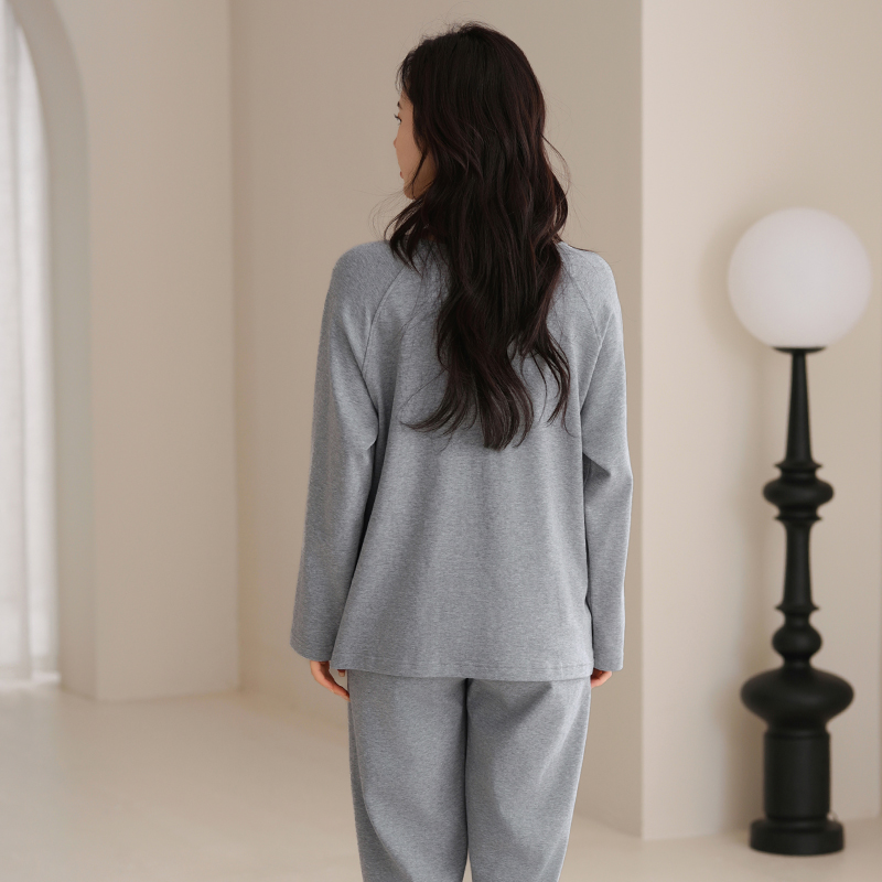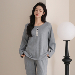 透气套装 芬腾睡衣女春秋款 外穿家居服秋季 可调节系带长裤 圆领长袖