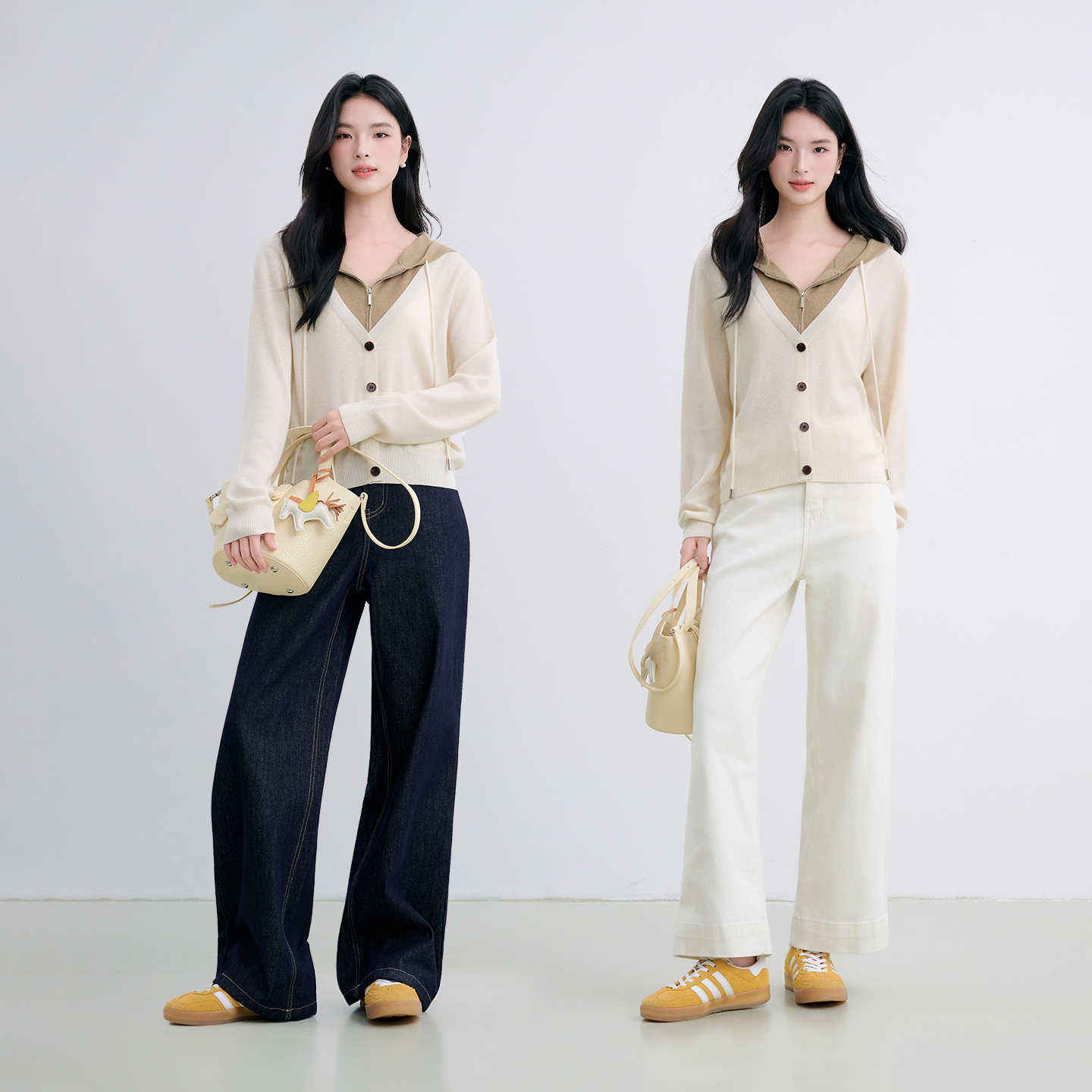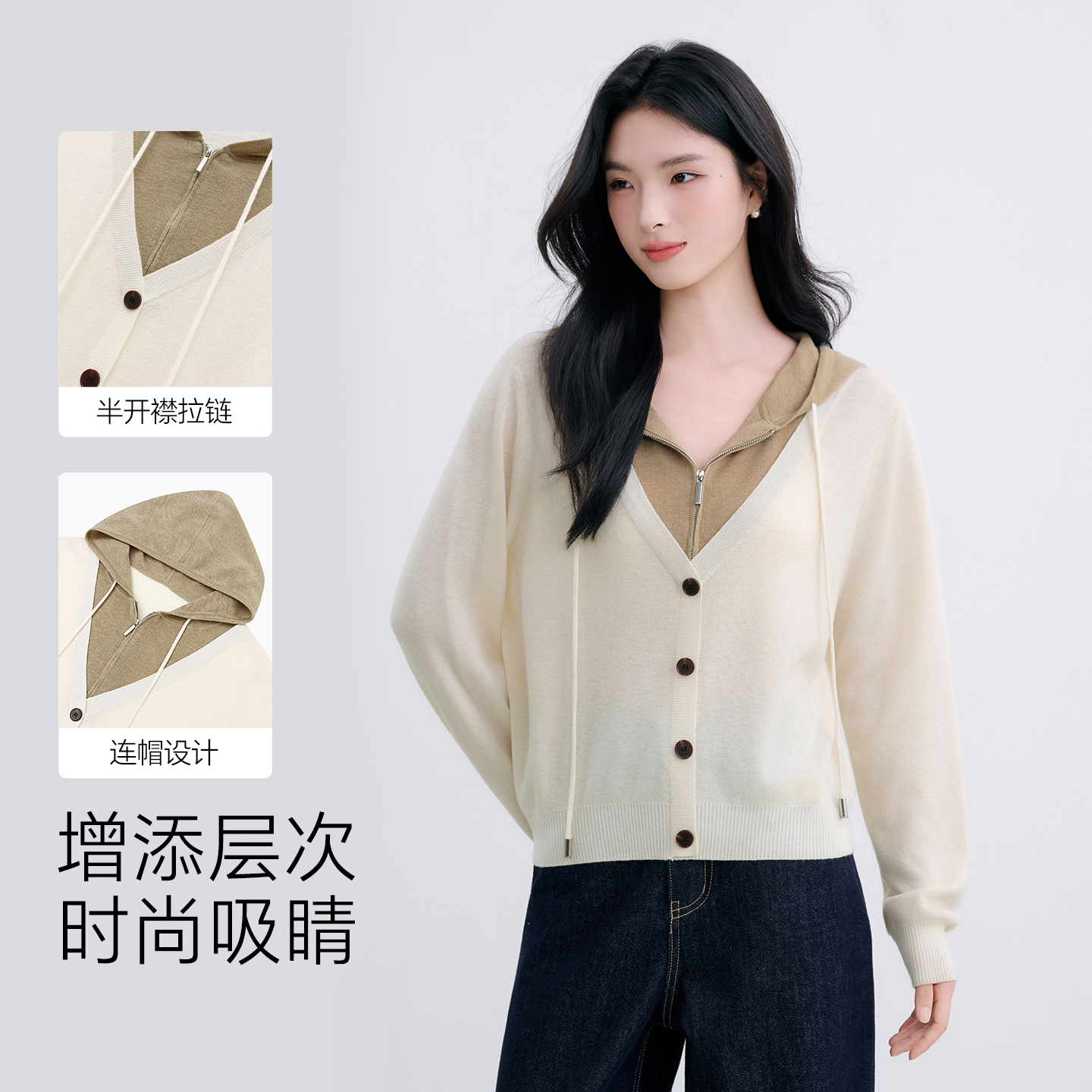 韩系慵懒风拼接假两件连帽套头针织衫 Basic 新款 百家好秋季 House