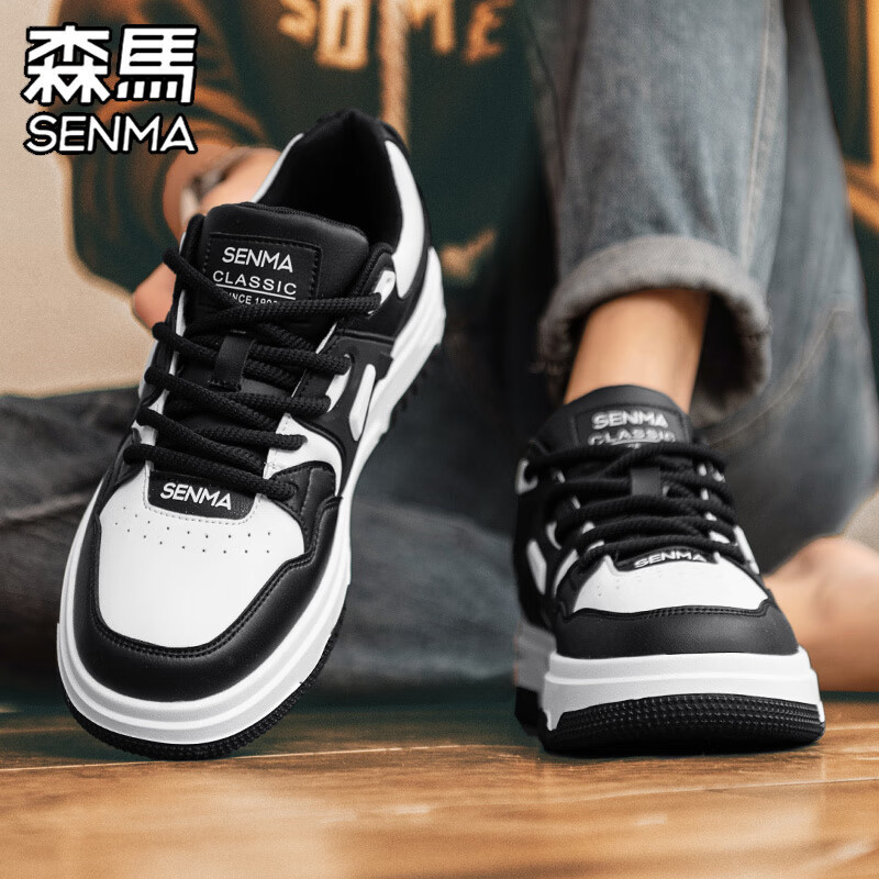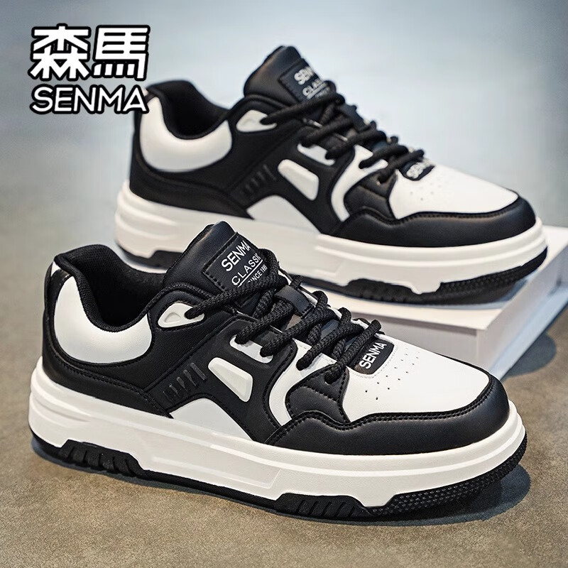 青少年运动增高小白潮鞋 高级感百搭休闲黑白熊猫板鞋 秋季 森马男鞋