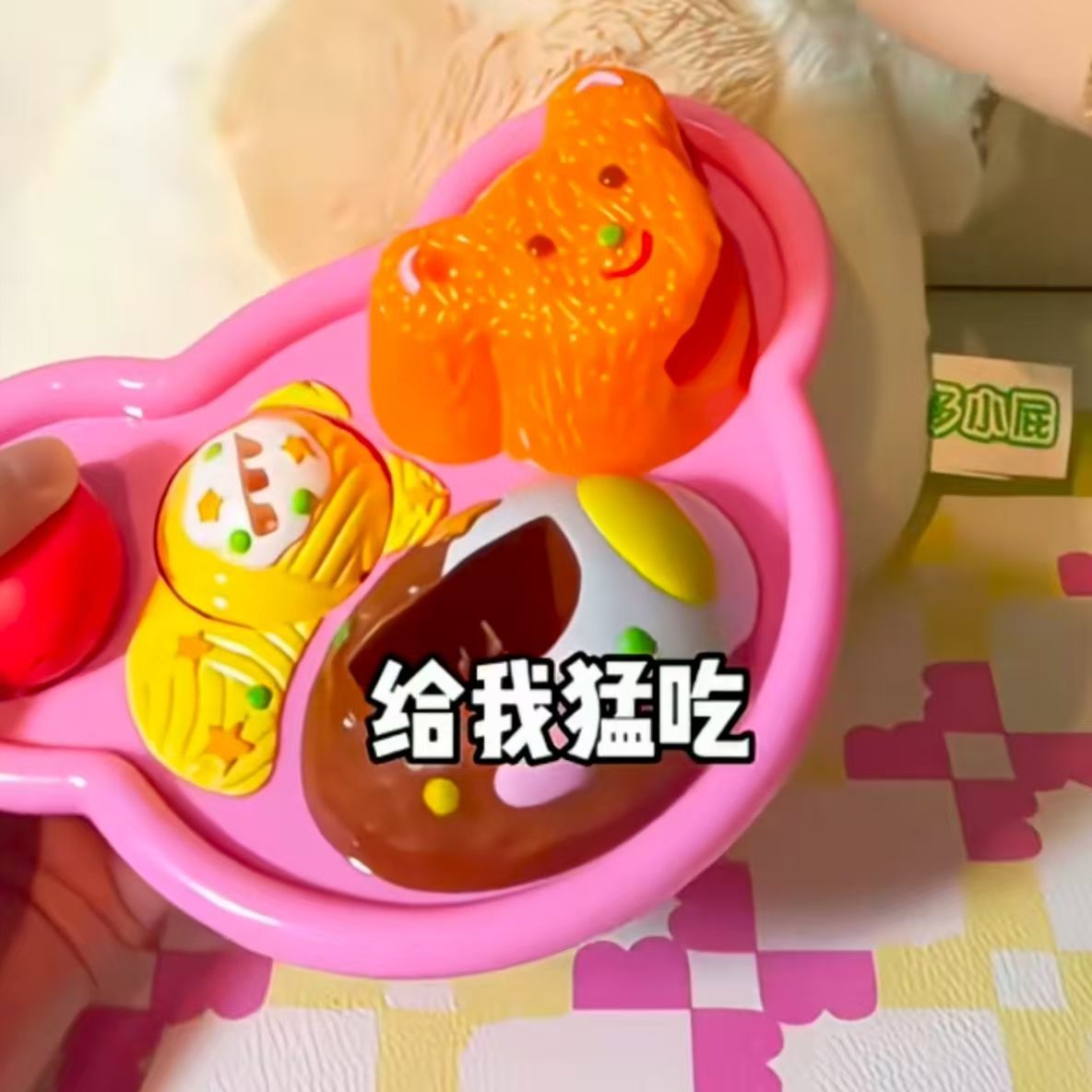 益智小熊餐盘喂食玩具便当盒食玩迷你儿童过家家玩具套装 布丁拉面