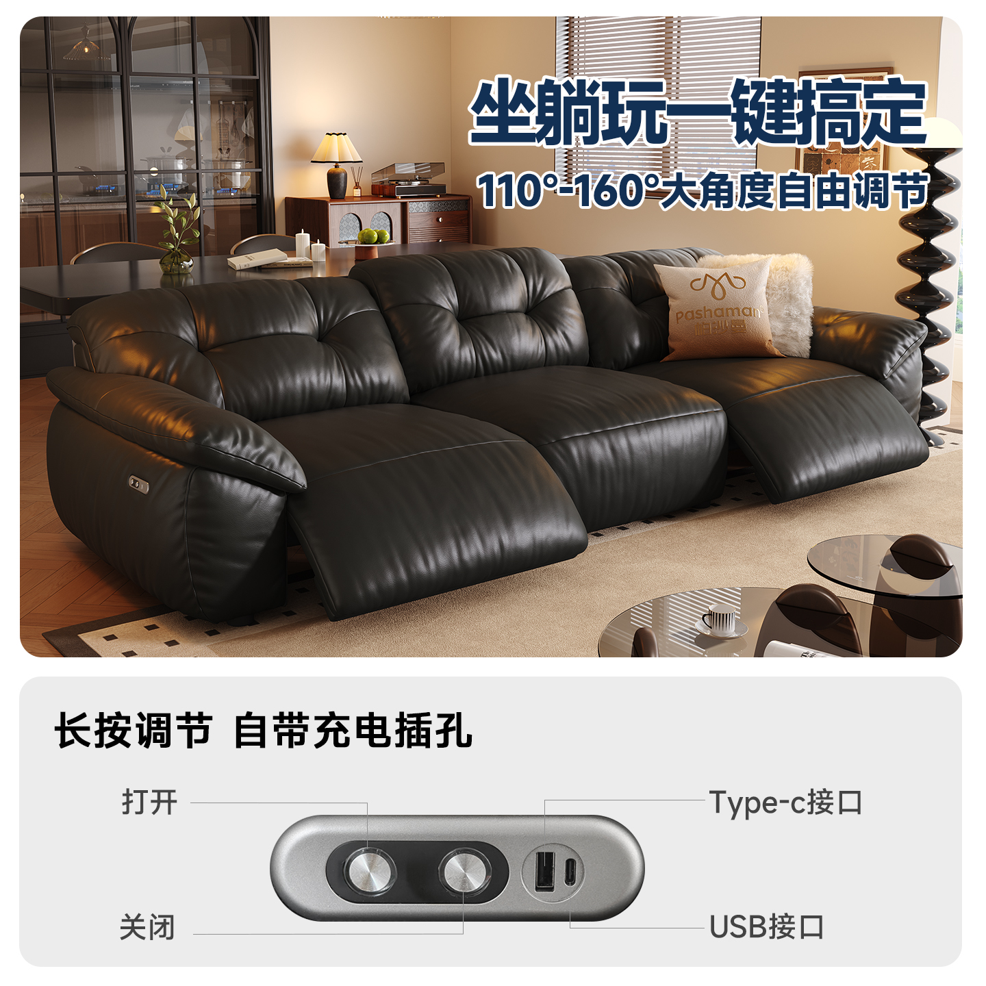 帕沙曼云朵真皮电动沙发头层牛皮法式 现代直排零靠墙 复古2025新款