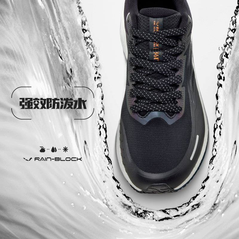 新款 秋季 跑步鞋 防泼水跑鞋 子男 361雨屏8运动鞋 黑色防滑减震鞋 男鞋