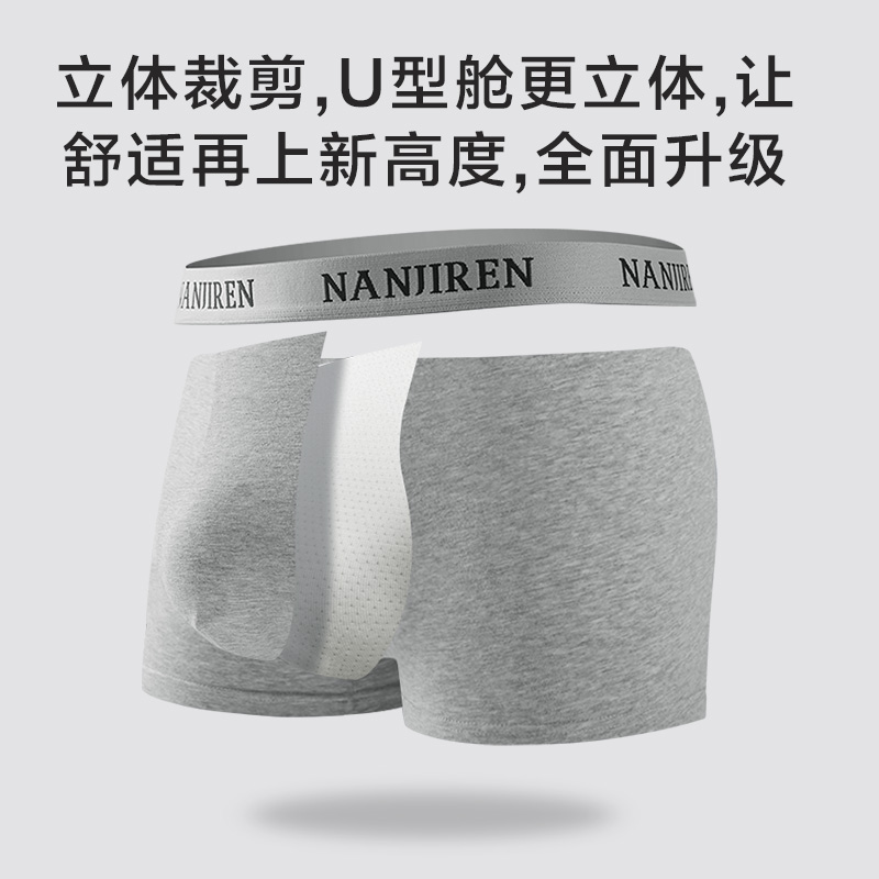 2025新款 男生纯棉全棉抑菌裆四角裤 男式 平角短裤 猫人男士 男款 内裤