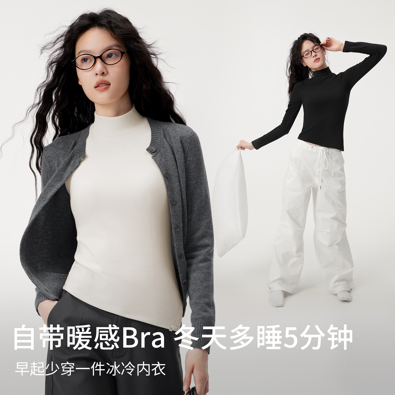 半练带胸垫打底衫 上衣肌底衣摇粒绒冬加绒 半高领秋衣保暖内搭长袖
