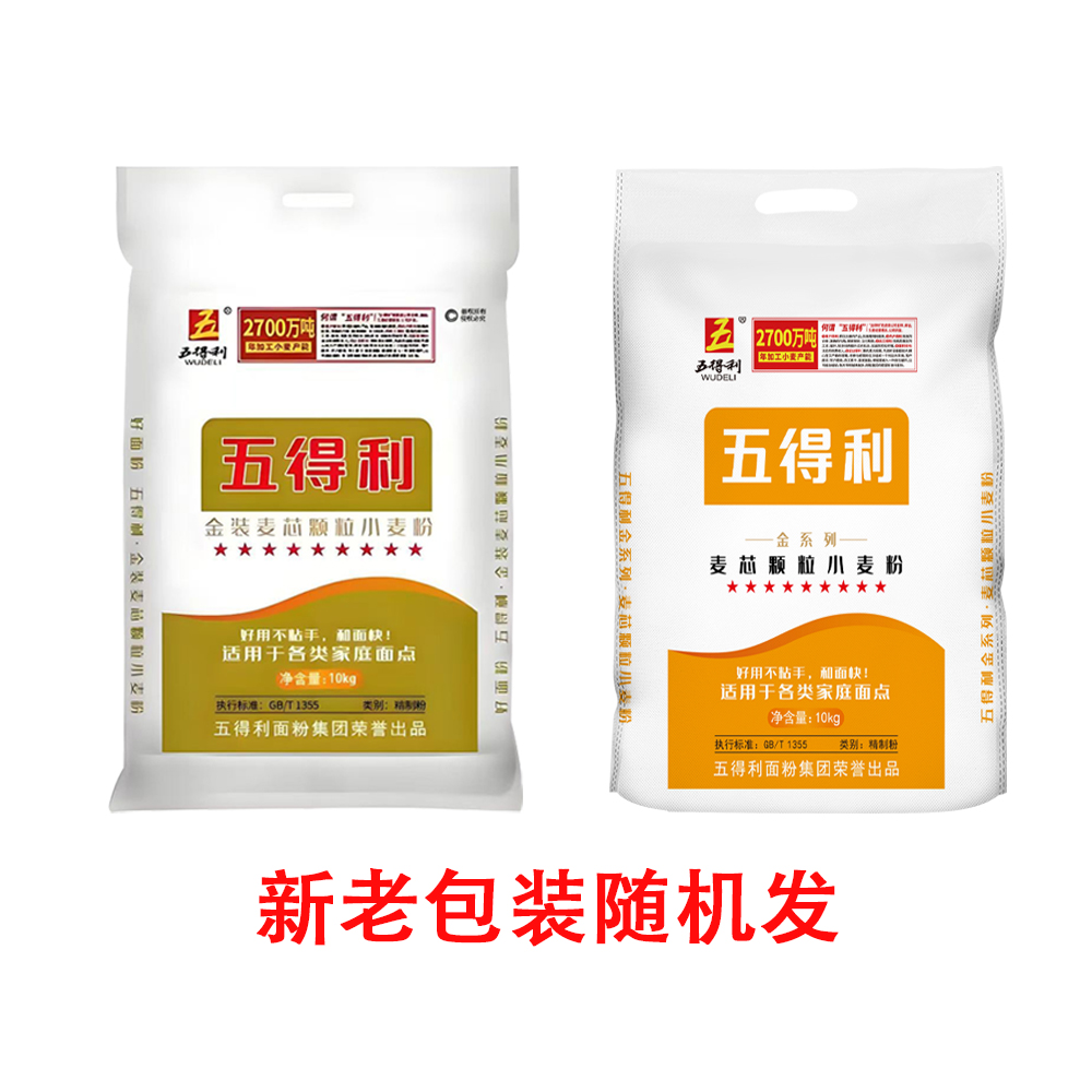 五得利面粉金装 颗粒小麦粉10kg家用包子饺子20斤白面沙子面麦芯
