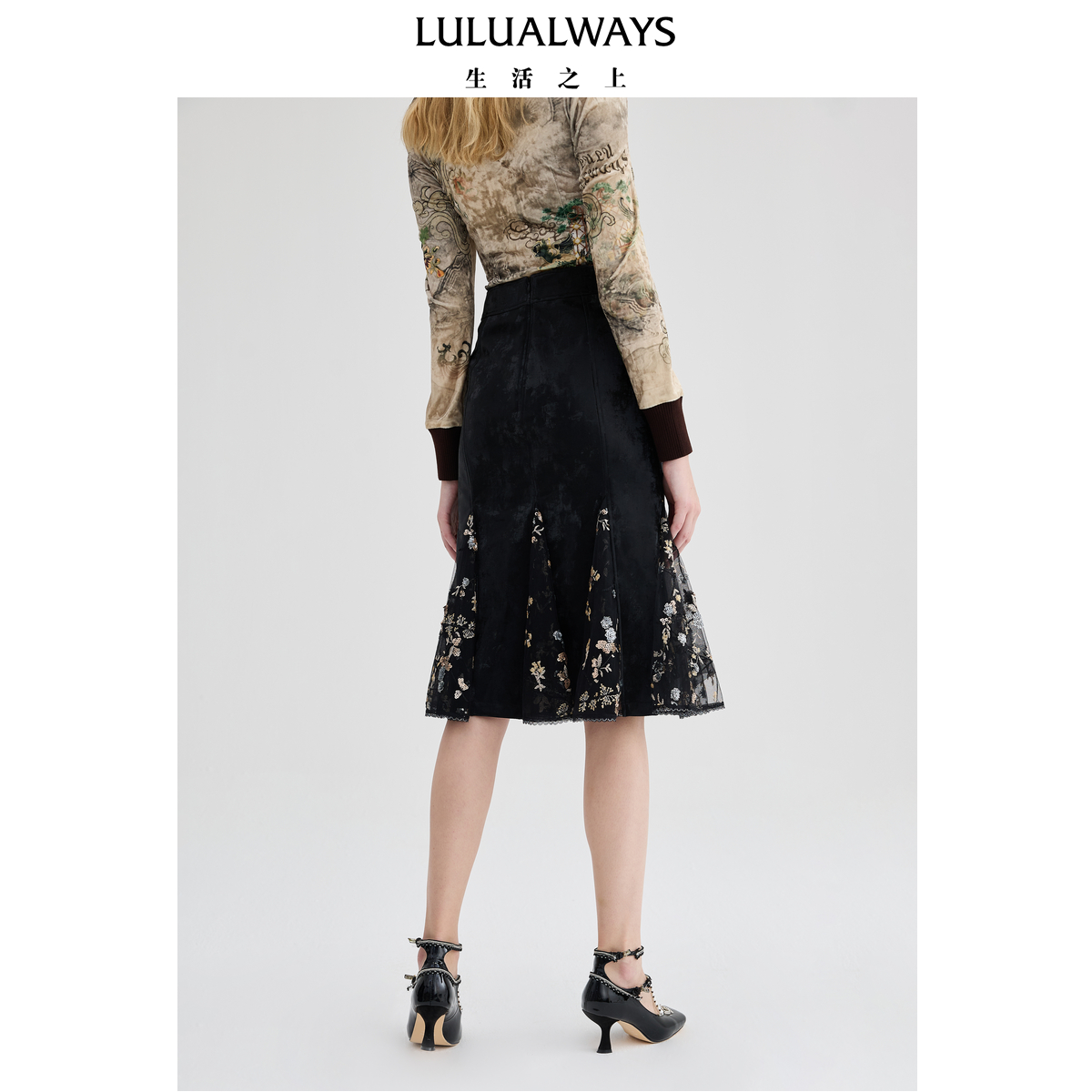 百搭A字裙子 珂莱蒂尔2025年黑色垂感半身裙女高腰时尚 玫瑰裙