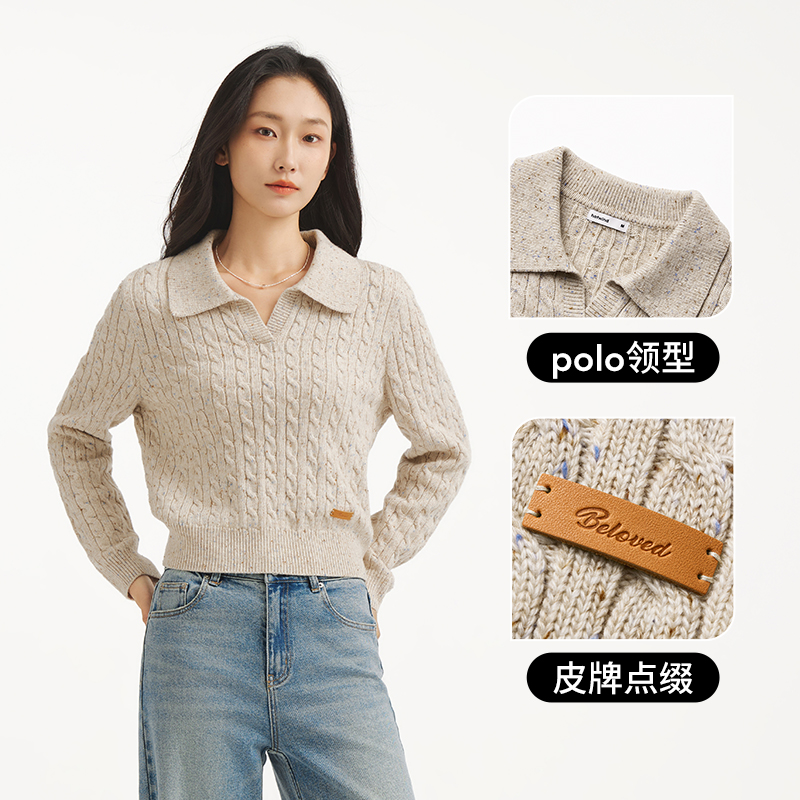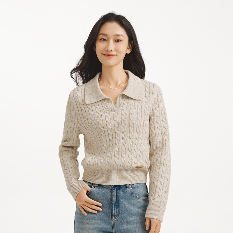 花纱绞花针织衫 新款 上衣 翻领老钱风毛衣2025年秋季 热风女士针织衫