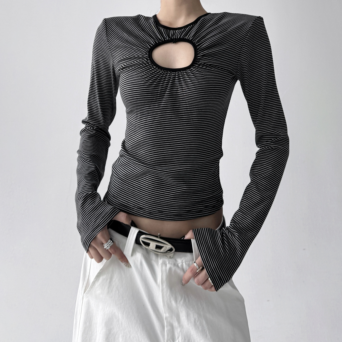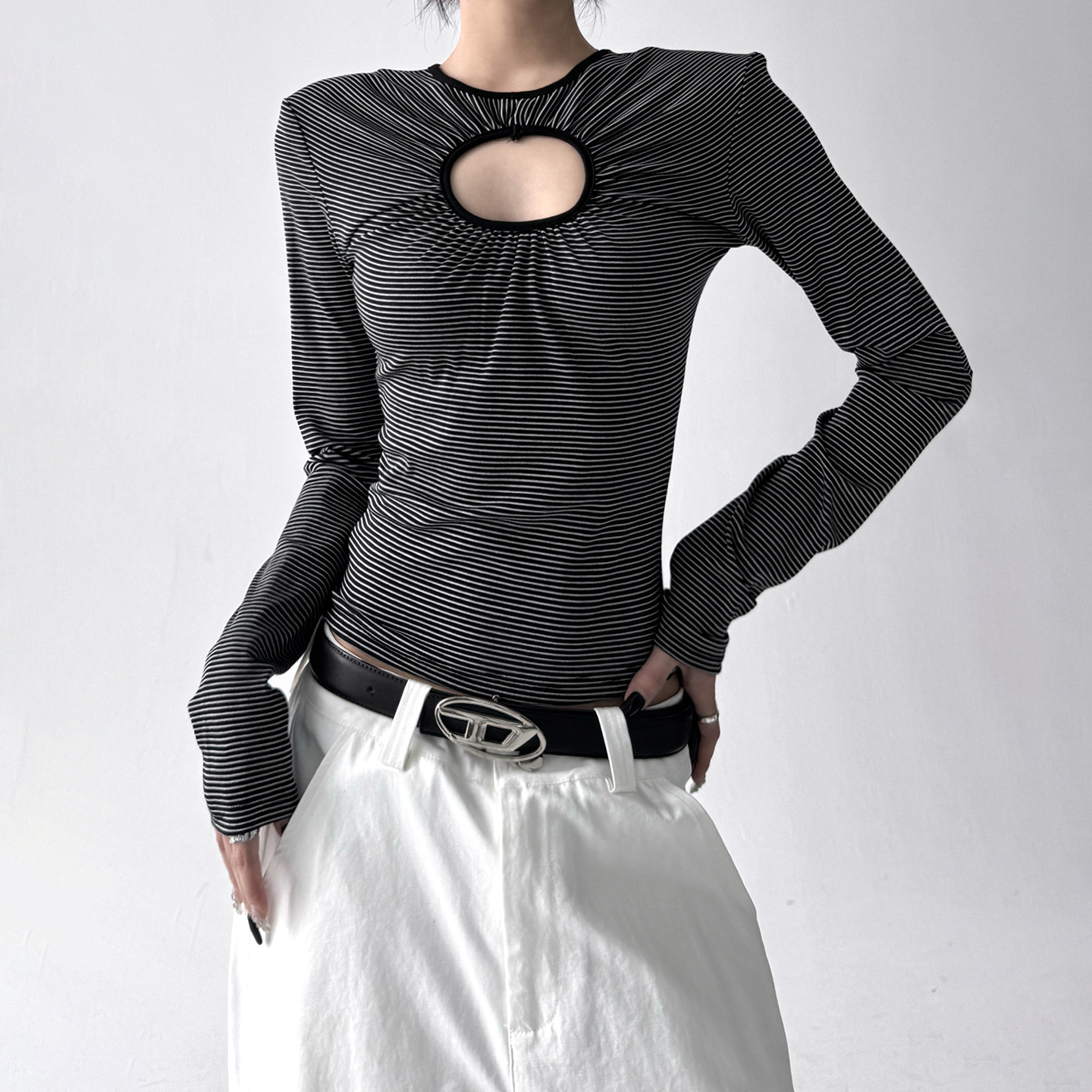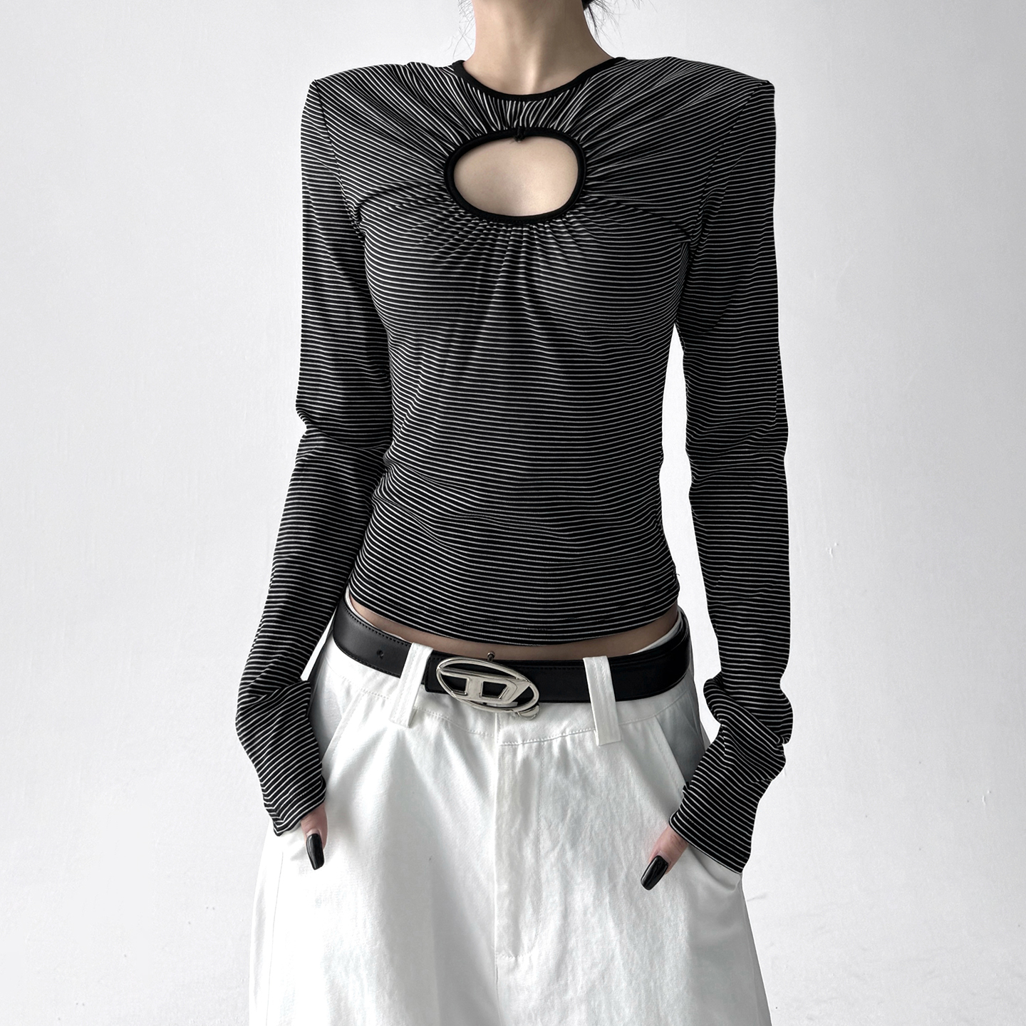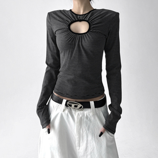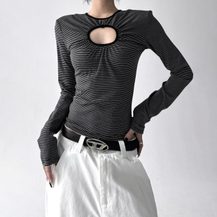 镂空设计感前后两穿设计休闲条纹长袖 时尚 新款 超好看2025秋季