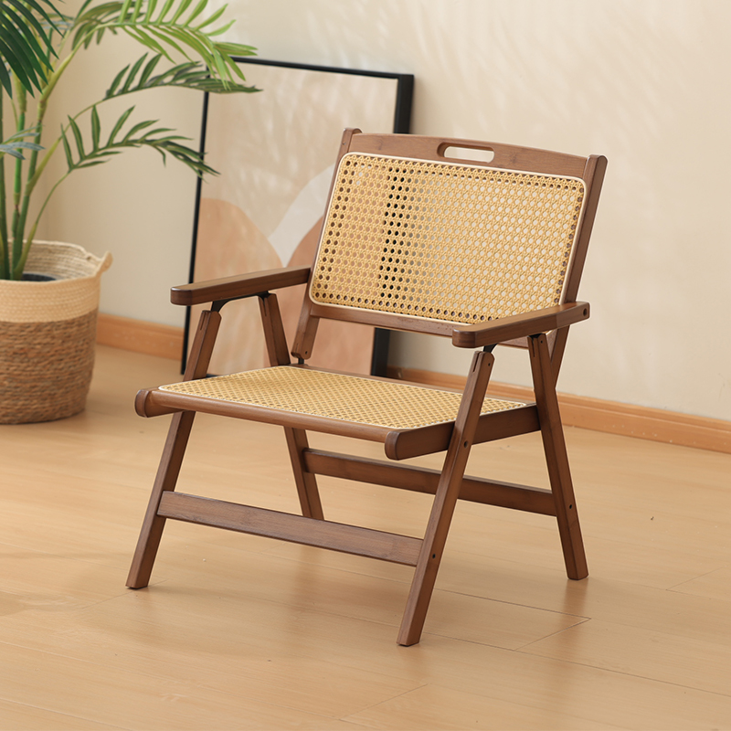 折叠椅藤编靠背椅子民宿酒店藤椅扶手户外休闲椅单人奶油风折叠椅