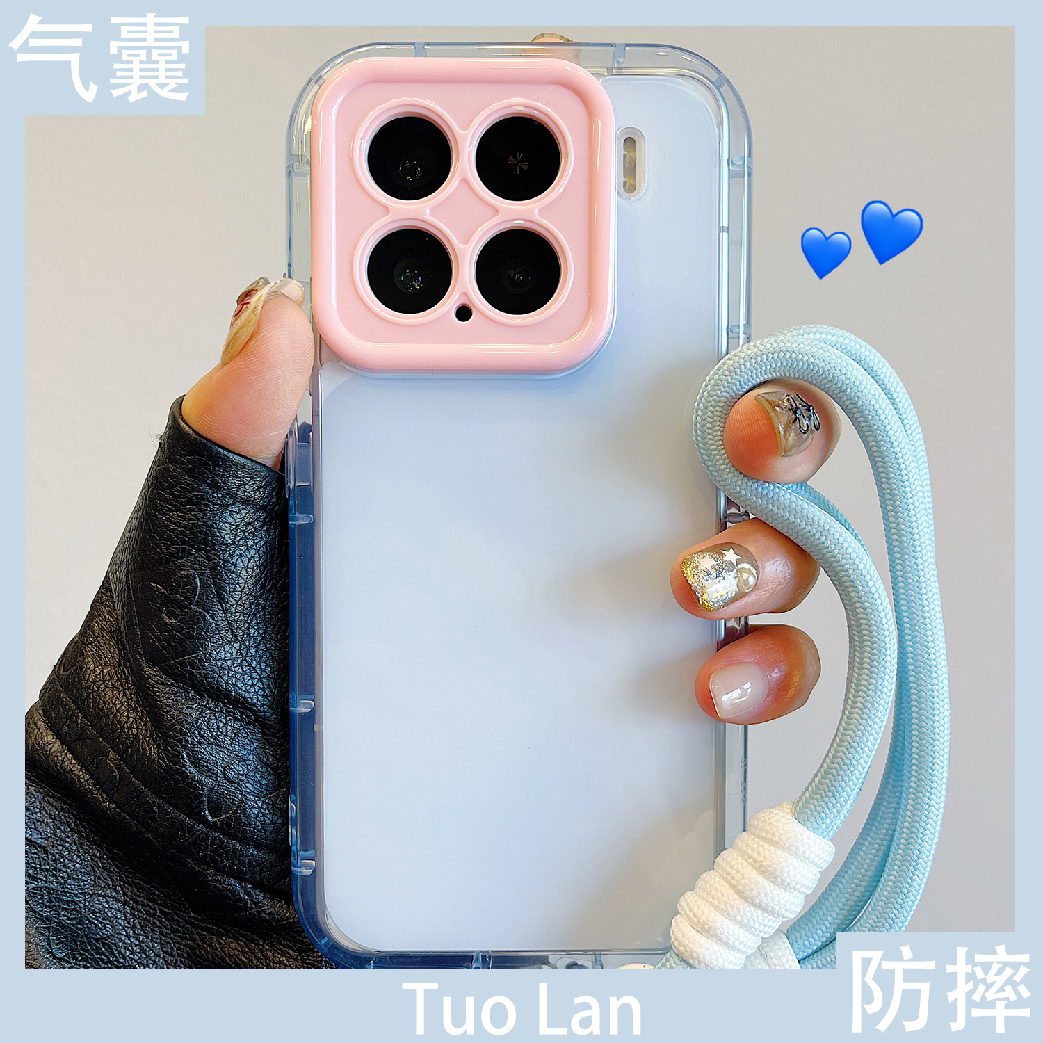 拓岚 手机壳情侣简约纯色糖果色二合一MI14pro腕带挂绳全包保护镜头框气囊加厚防摔男女潮 适用小米15pro新款