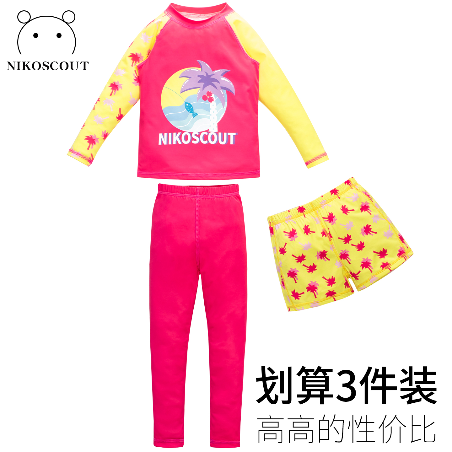 小孩大童三件套12岁荧光色超好看分体初中生泳装 女童泳衣长袖 长裤