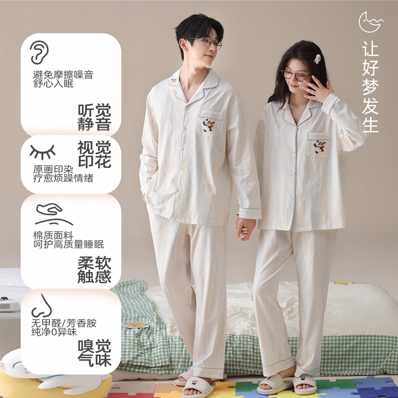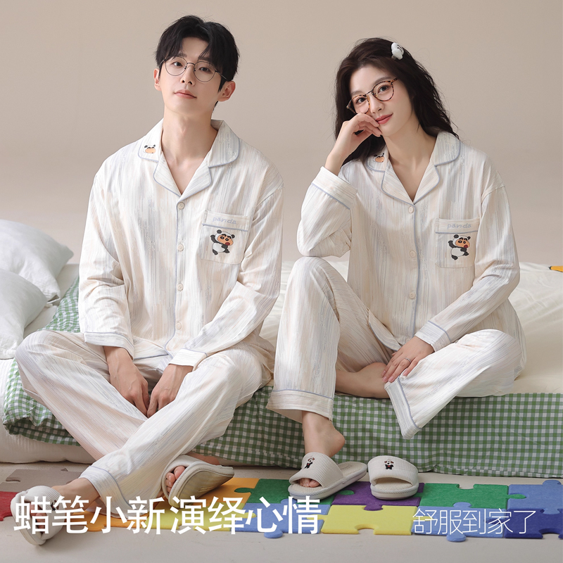 蜡笔小新联名 卡通男士 情侣睡衣女款 纯棉长袖 家居服套装 春秋季