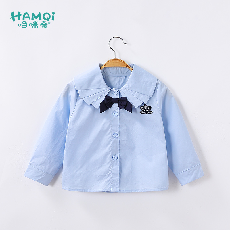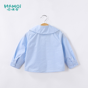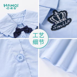 简约日系JK制服学院风纯棉长袖 女设计感小众白衬衣 牛津纺蓝色衬衫