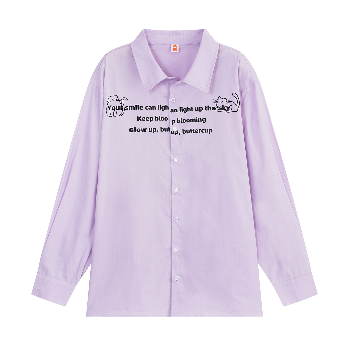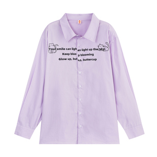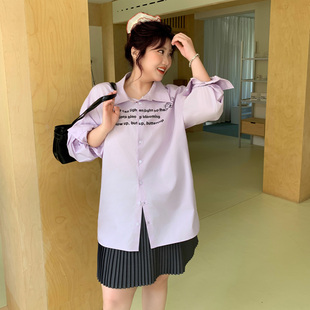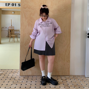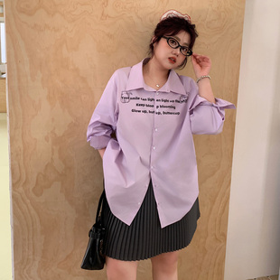 韩系微胖mm显瘦遮肉亲肤舒适上衣 女装 YUZI鱼子衬衫 字母印花大码