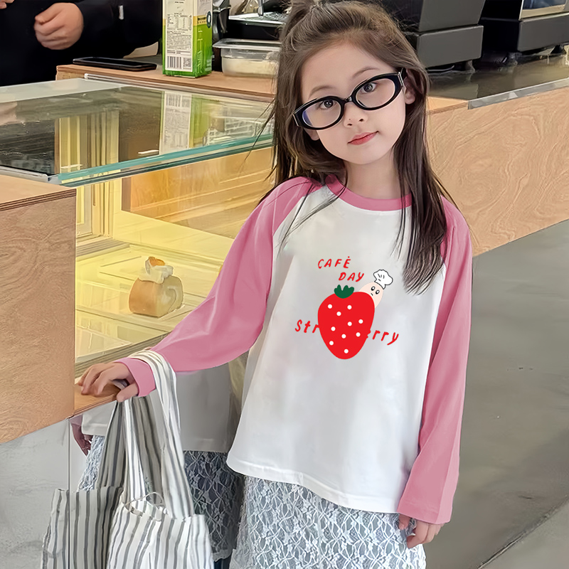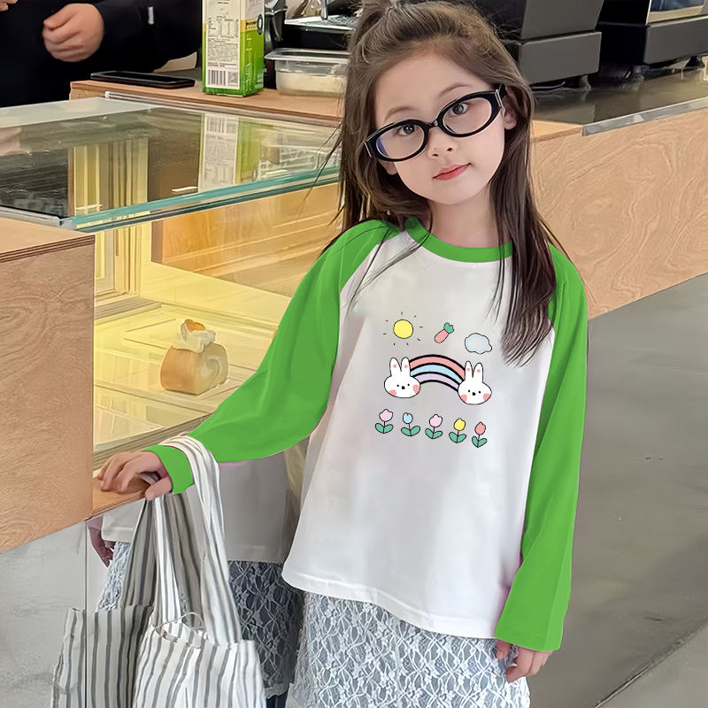 卡通上衣宝宝纯棉秋装 小女孩插肩袖 T体恤 纯棉2025新款 女童t恤长袖