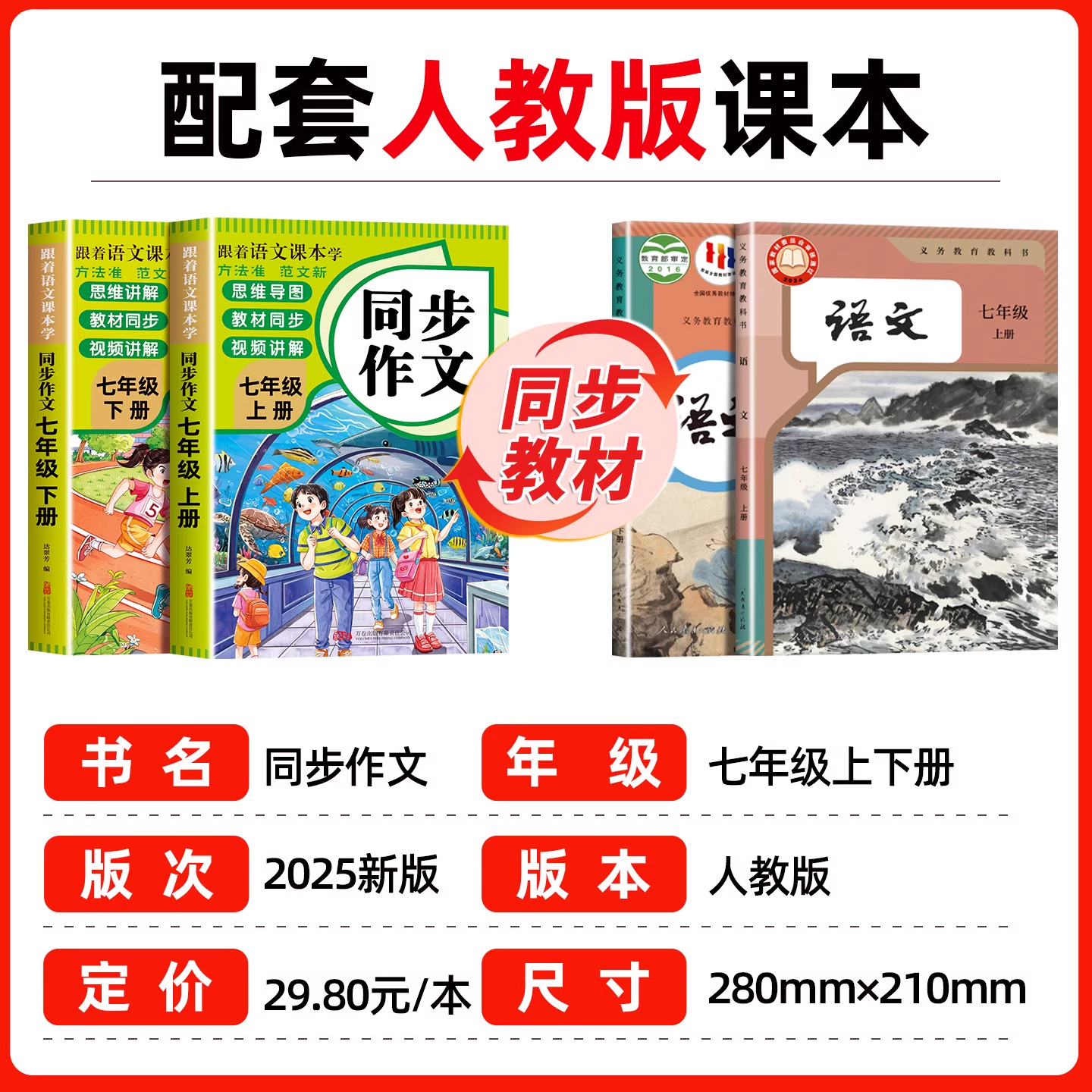 2025新版 初中生语文作文书大全初中高分范文精选初一初二上册下册优秀满分作文英语中学生7上专项训练 七八年级上册同步作文人教版