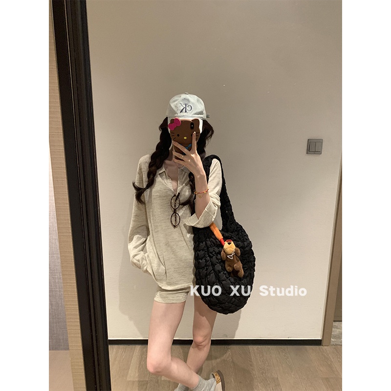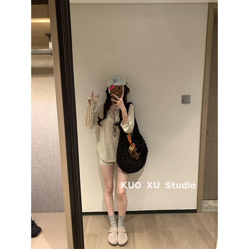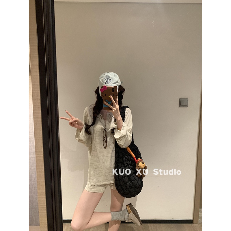 T恤上衣休闲宽松直筒百搭短裤 巨好看夏装 polo衫 罩衫 女 一整套长袖