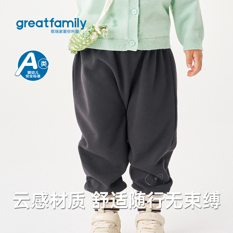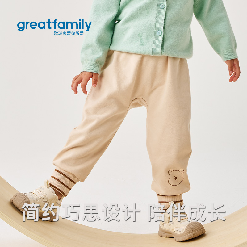 儿童纯色简约休闲风束脚灯笼PP裤 歌瑞家女童爬爬裤 2025秋新款