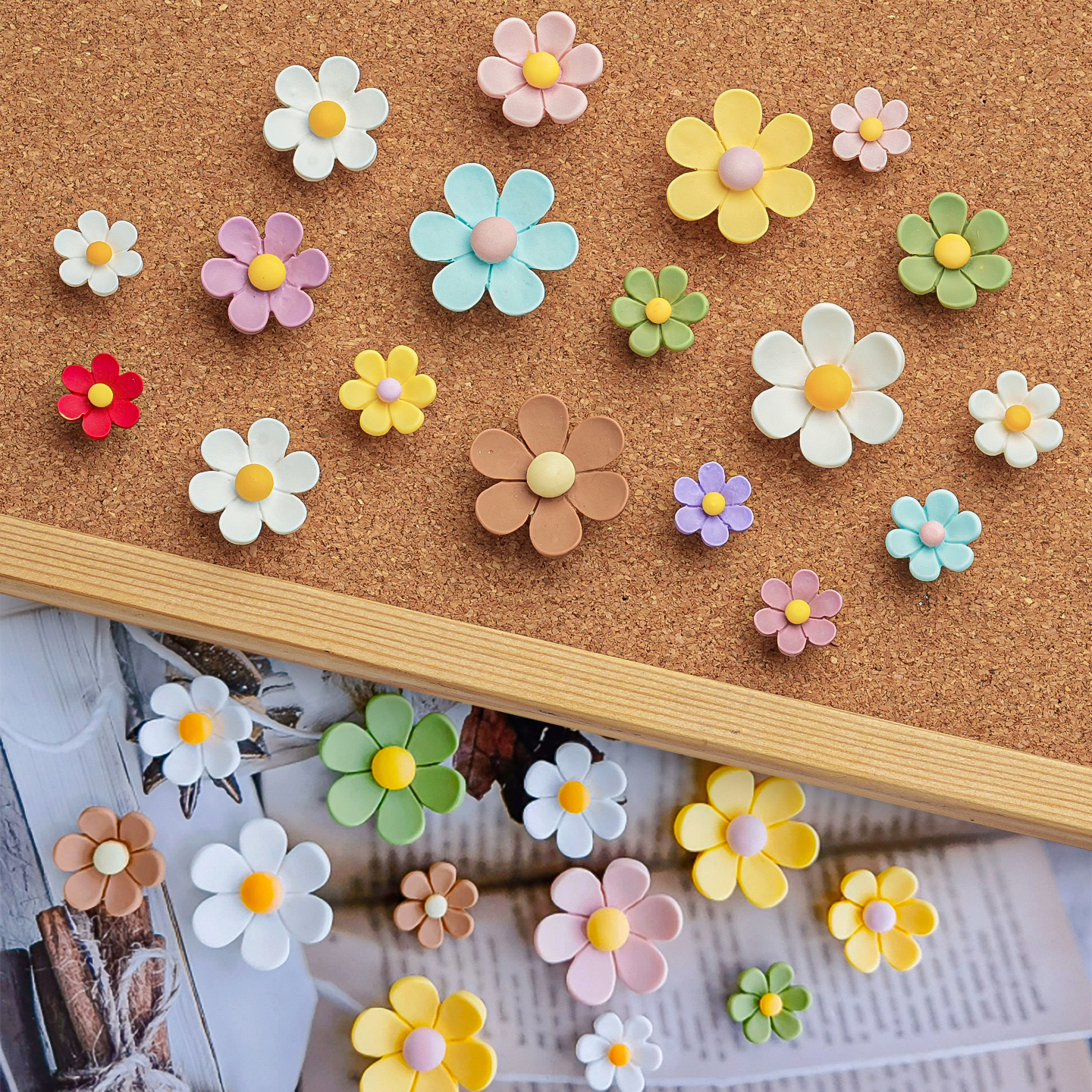 100个花朵彩色图钉毛毡墙按钉创意可爱工字钉毛毡板钉子软木板配件幼儿园照片墙固定器摁钉装 ins饰品点缀C1