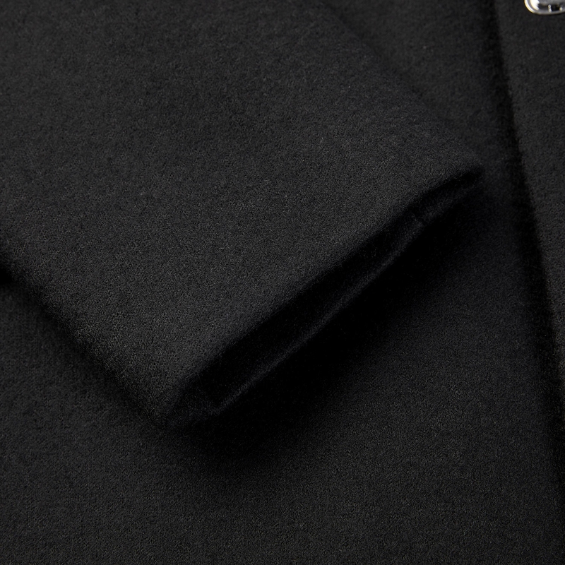 韩版 长款 呢子加厚风衣外套 2025春秋季 V37黑色高级感毛呢大衣男款