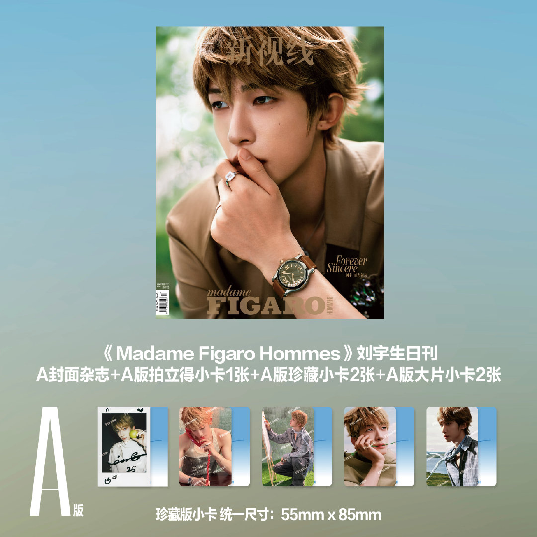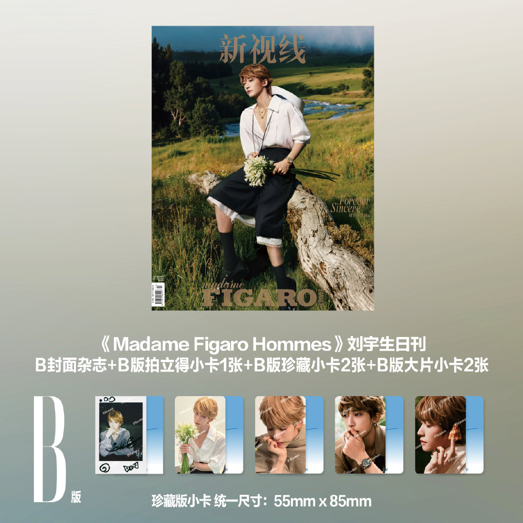 隐藏自拍小卡 费加罗 计入销量 3随1 新视线FIGARO 刘宇官方C版 2随1 8月 费加罗杂志2025年八月 套装 拍立得小卡 B版
