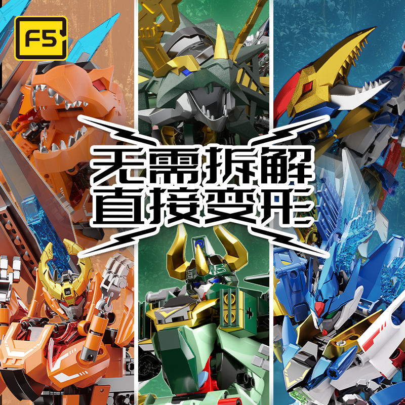 F5积木恐龙变形机甲四圣兽多关节可动益智玩具男孩子拼装 模日礼物