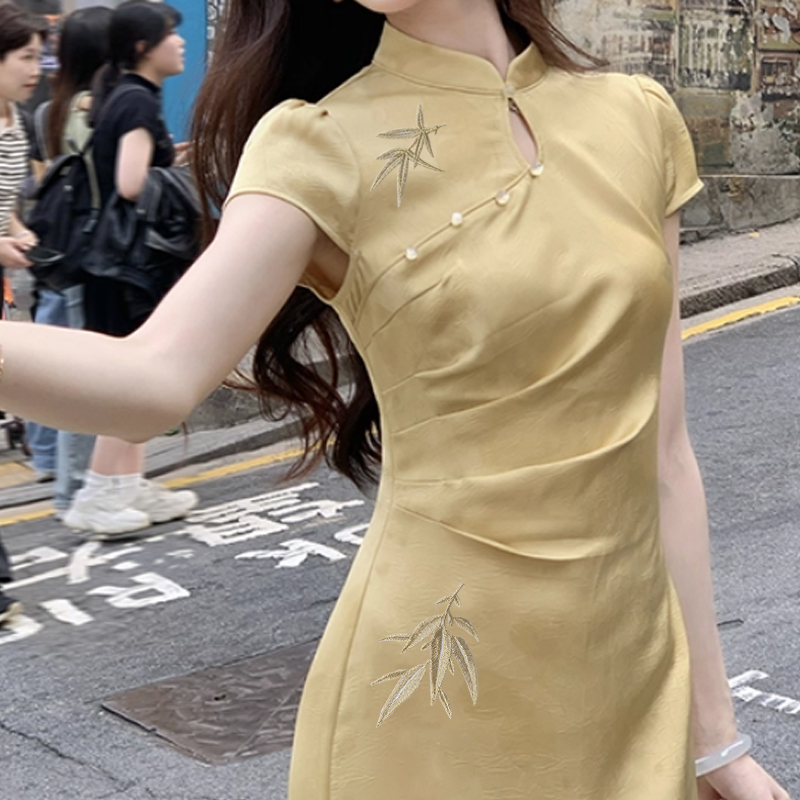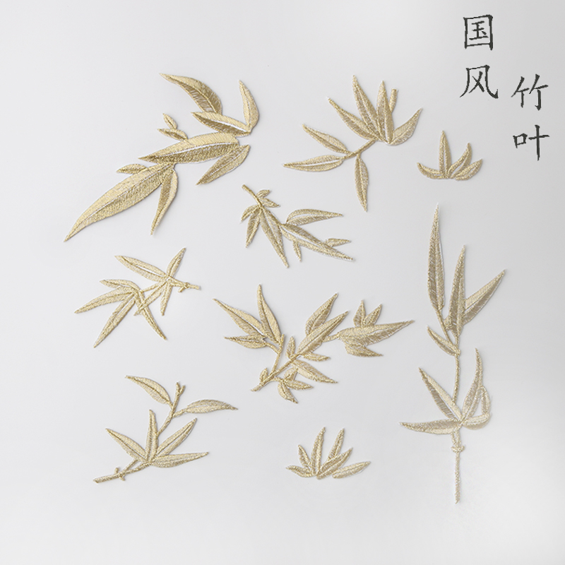 金色竹子竹叶刺绣布贴 饰贴国风背胶 diy旗袍汉服补丁贴衣服修补装