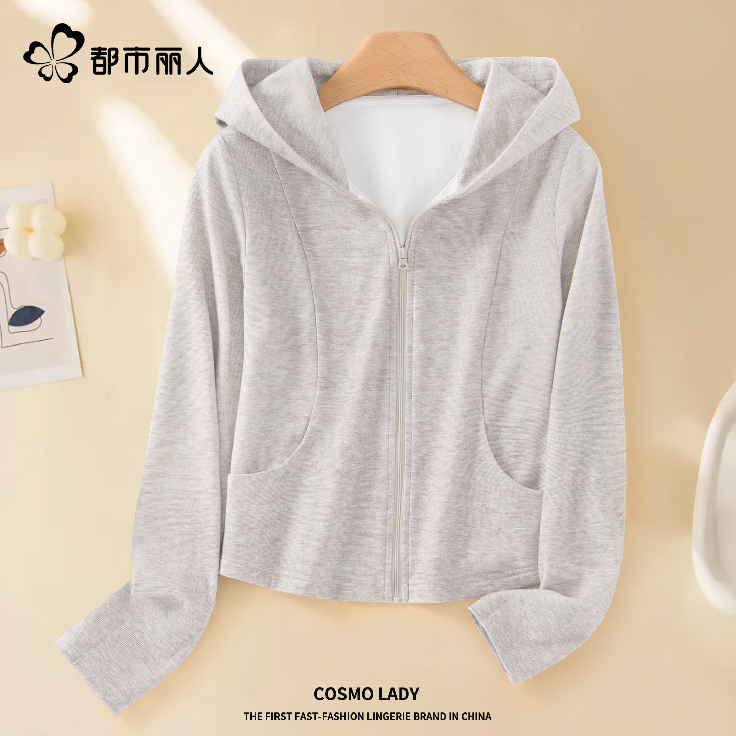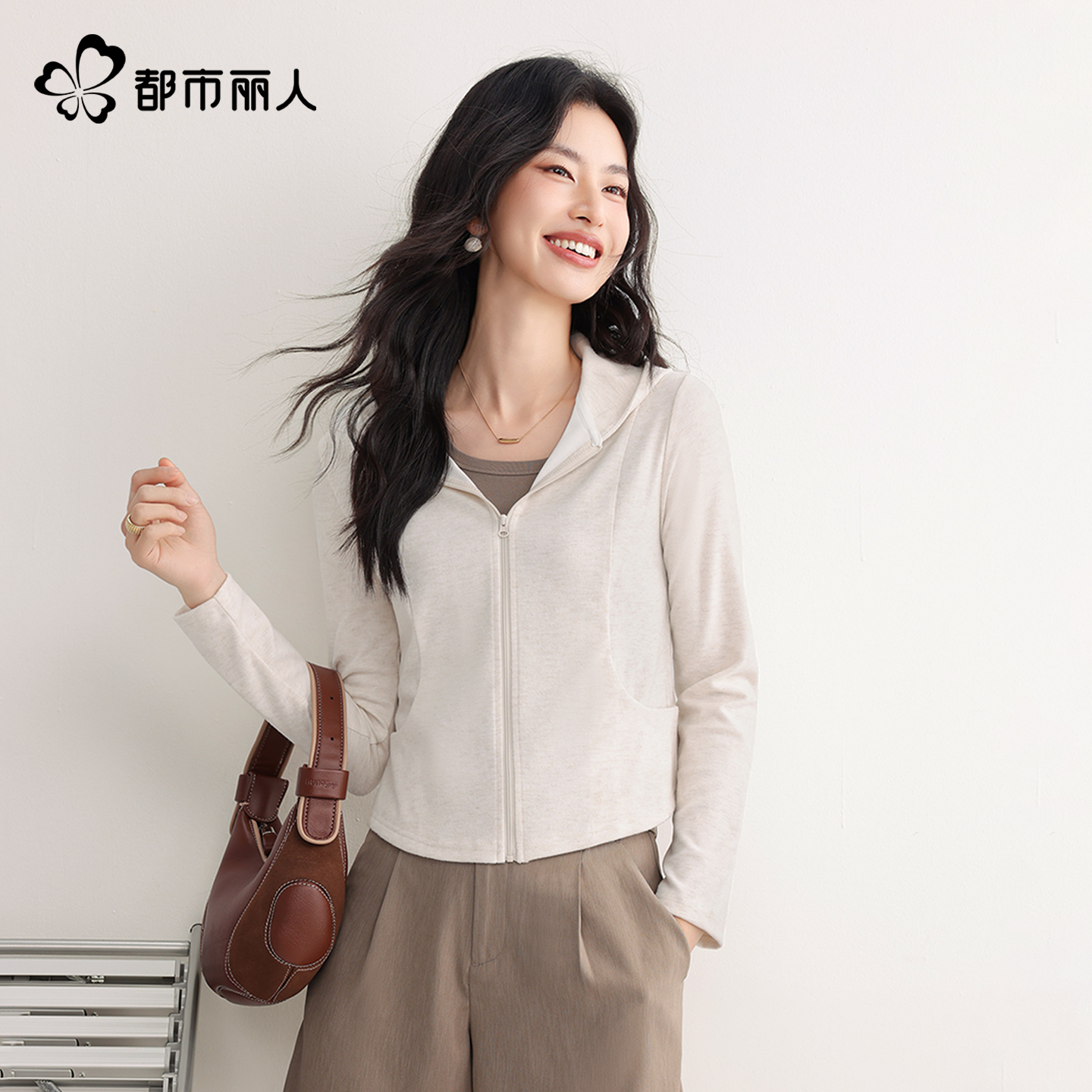 显瘦短款 修身 上衣X 早秋韩系糯米开衫 都市丽人连帽外套女2025新款
