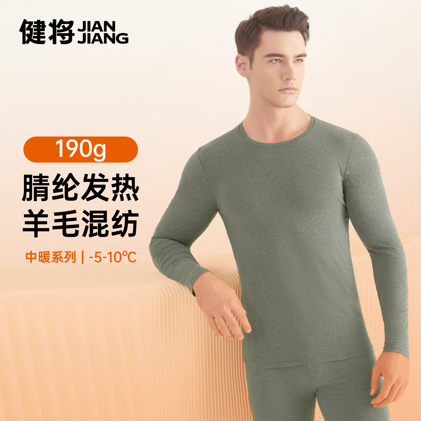 健将保暖衣男新款 内衣上身羊绒一体冬天保温 防寒发热打底内搭男士