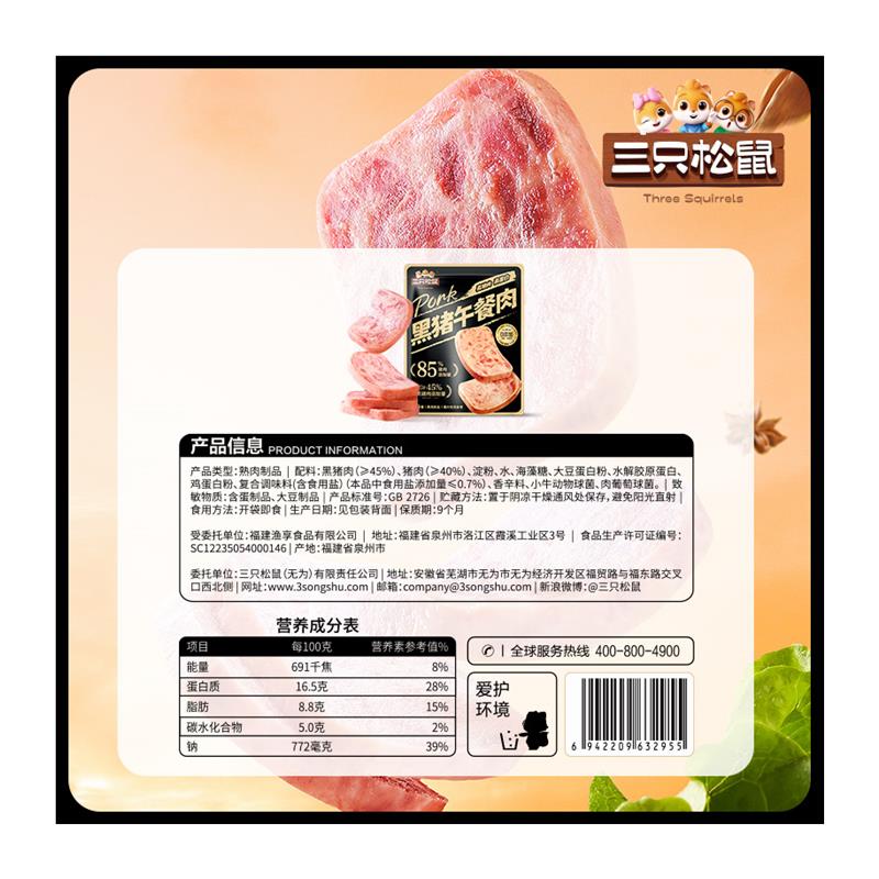 新货_黑猪肉午餐肉速食即食火腿早餐独立包装 小零食泡面