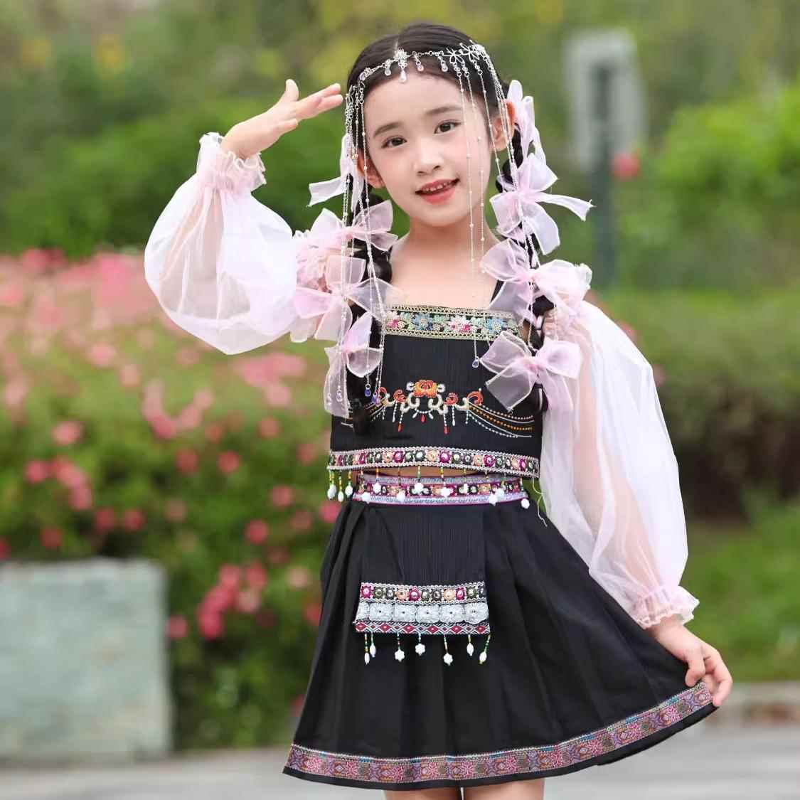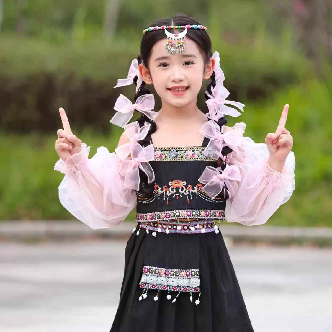 童三月三 公主裙小女孩云南少数民族演出服服饰儿 女 童哈尼族套装