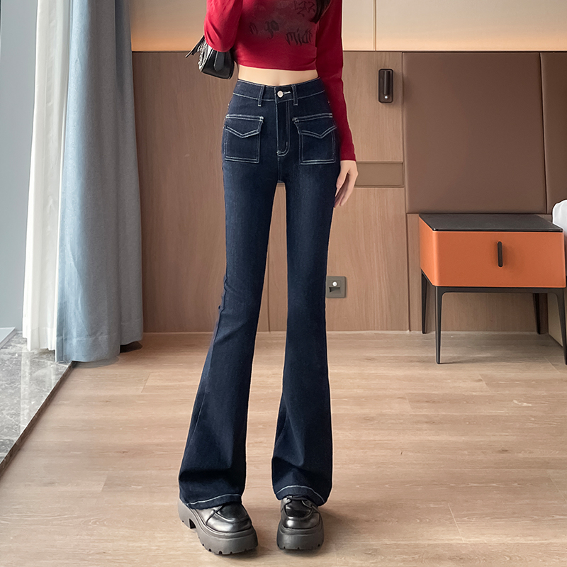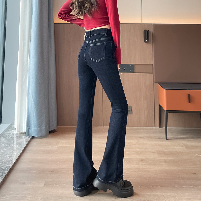 九分裤 乐町弹力牛仔裤 复古少女高腰显瘦喇叭裤 新款 型 2025年春季