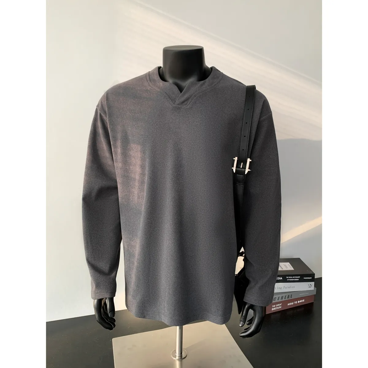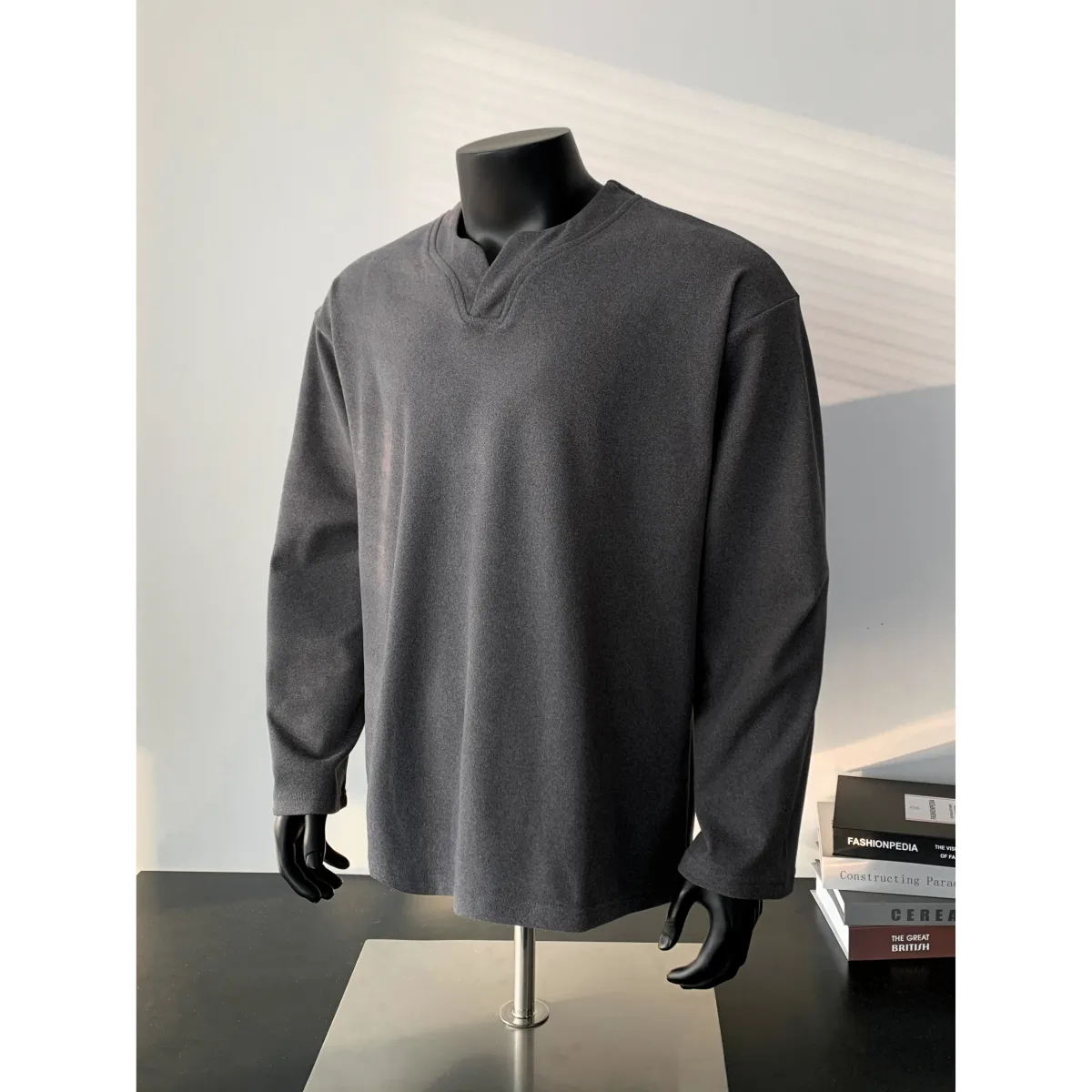 男士 潮牌重磅长袖 冬季 美式 t恤外穿上衣 2025新款 重磅德绒V领打底衫