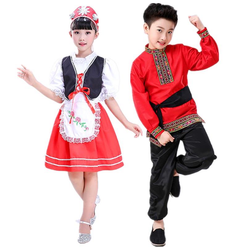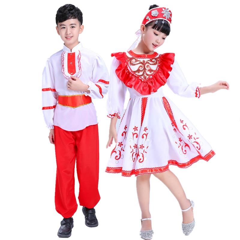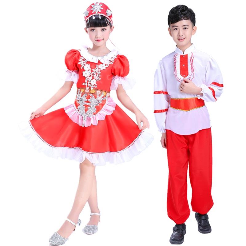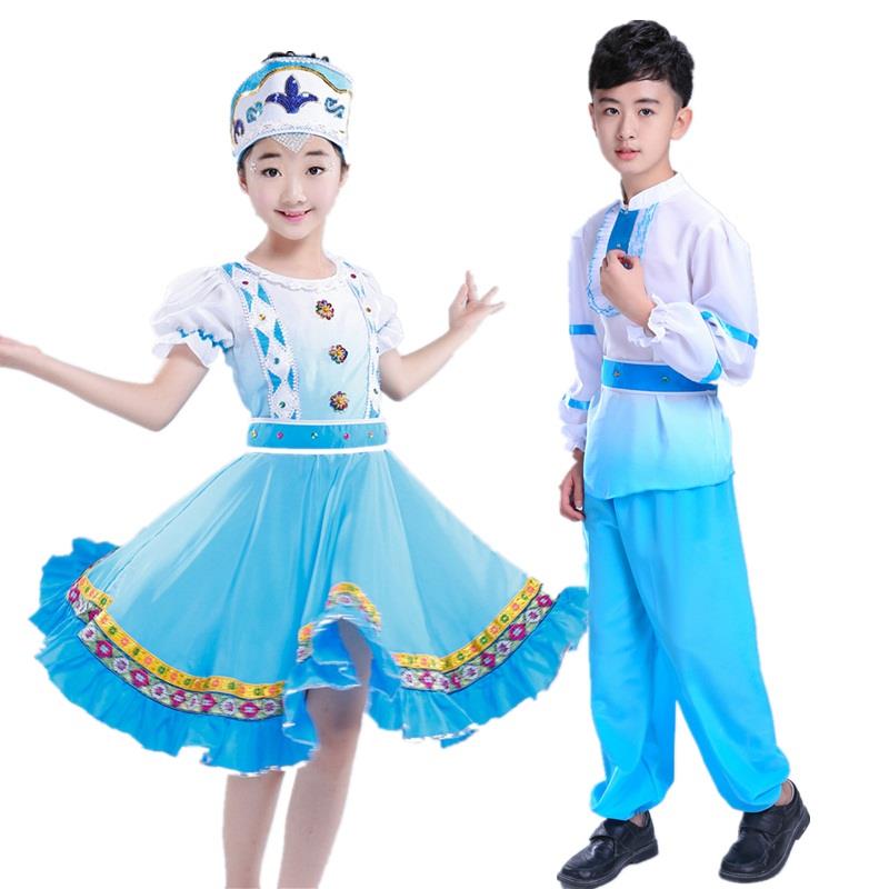 儿童俄罗斯族演出服塔塔尔民族舞蹈公主裙现代舞表演服男女童宫廷