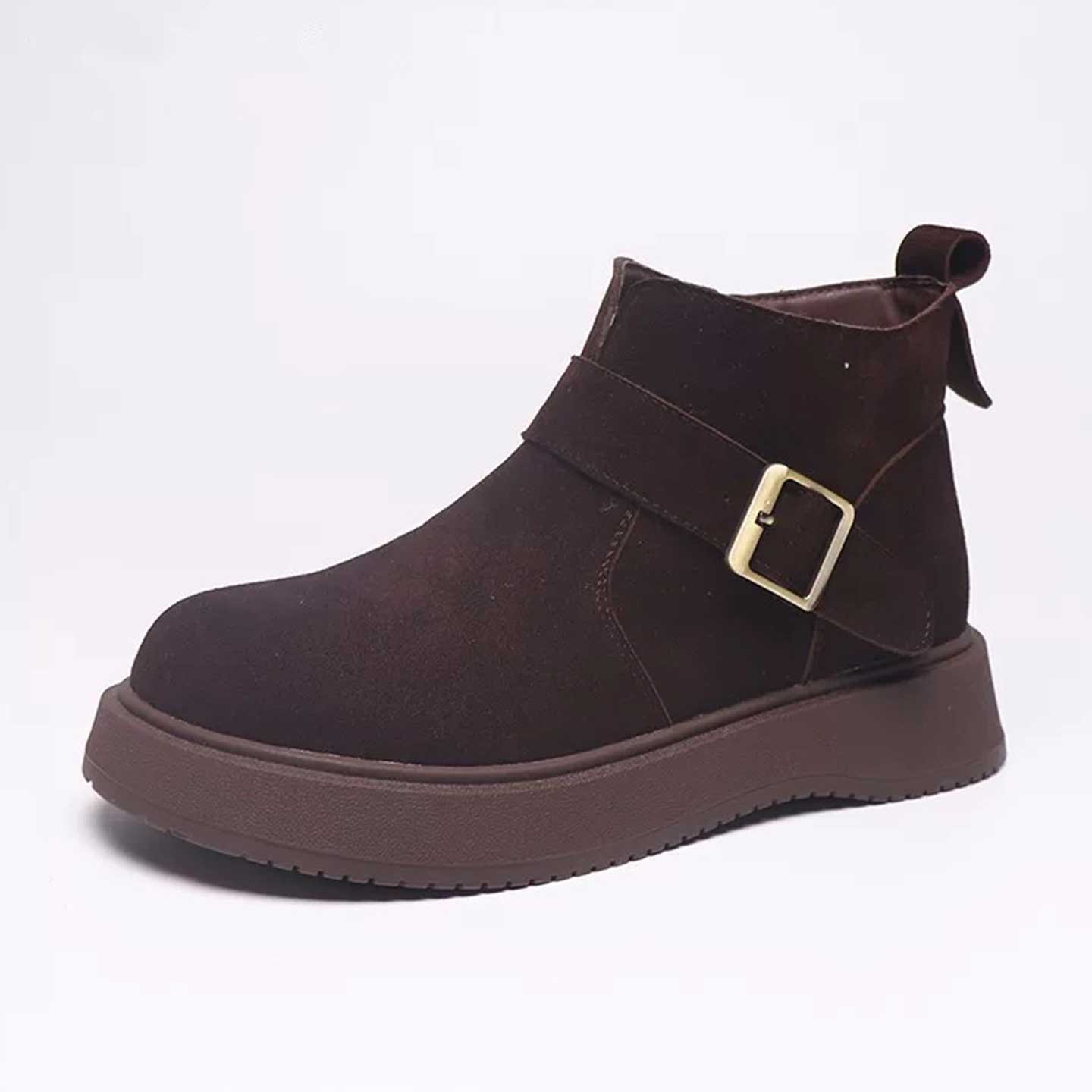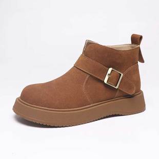 真皮厚底马丁靴女2025冬新款 棕色短靴复古户外徒步旅游登山沙漠靴