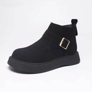 黑色增高靴子女时尚 新款 休闲皮面短靴 2025秋季 环球厚底马丁靴女款