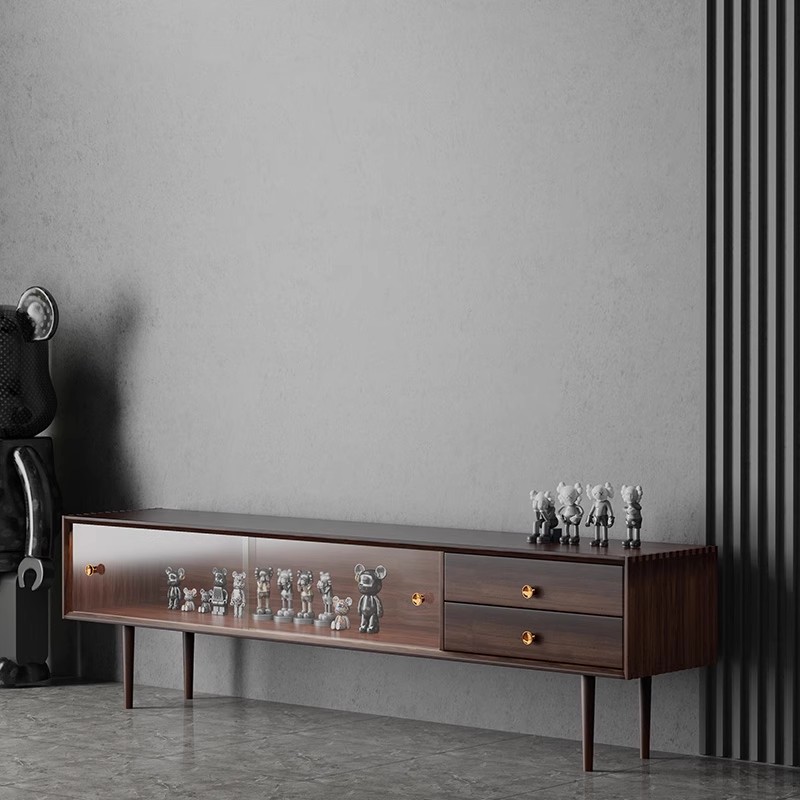 实木落地电视柜现代简约客厅家用中古地柜伸缩电视机柜轻奢高级感