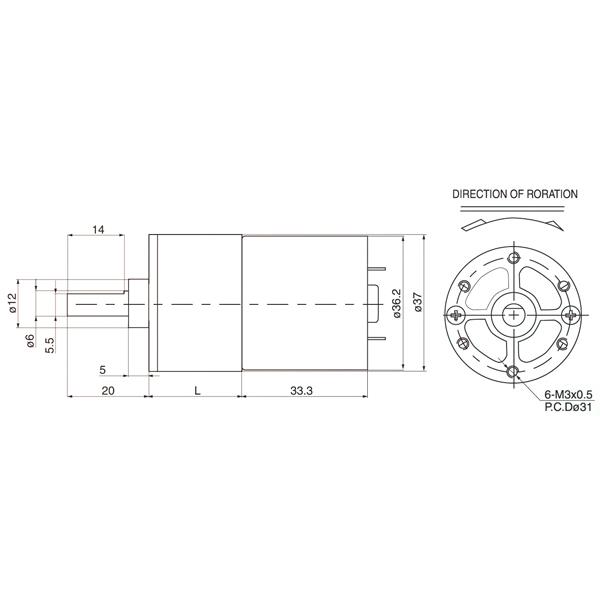 10W 37GA ZGA37RG正心中心出轴12V24V正科电机37mm ZYTD520