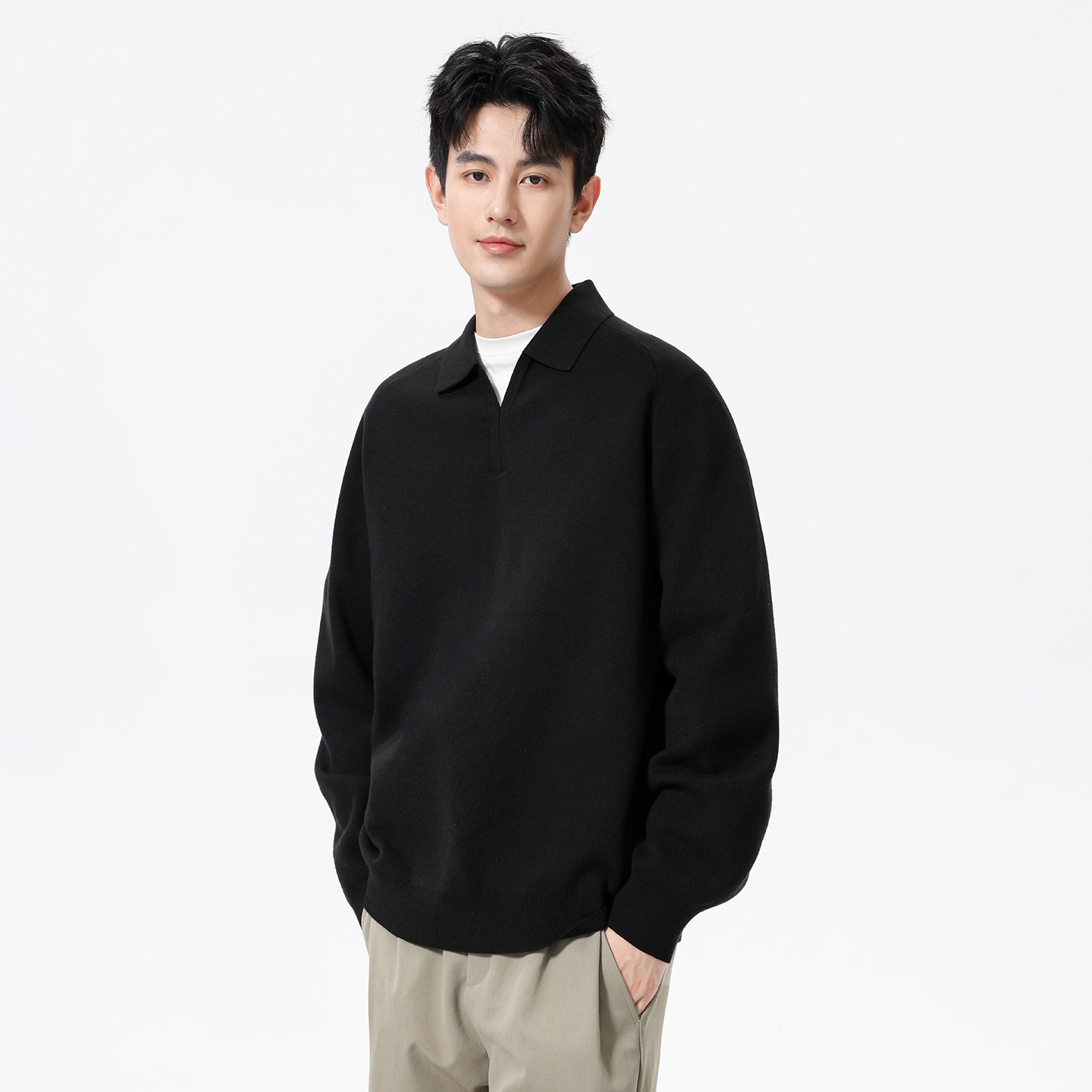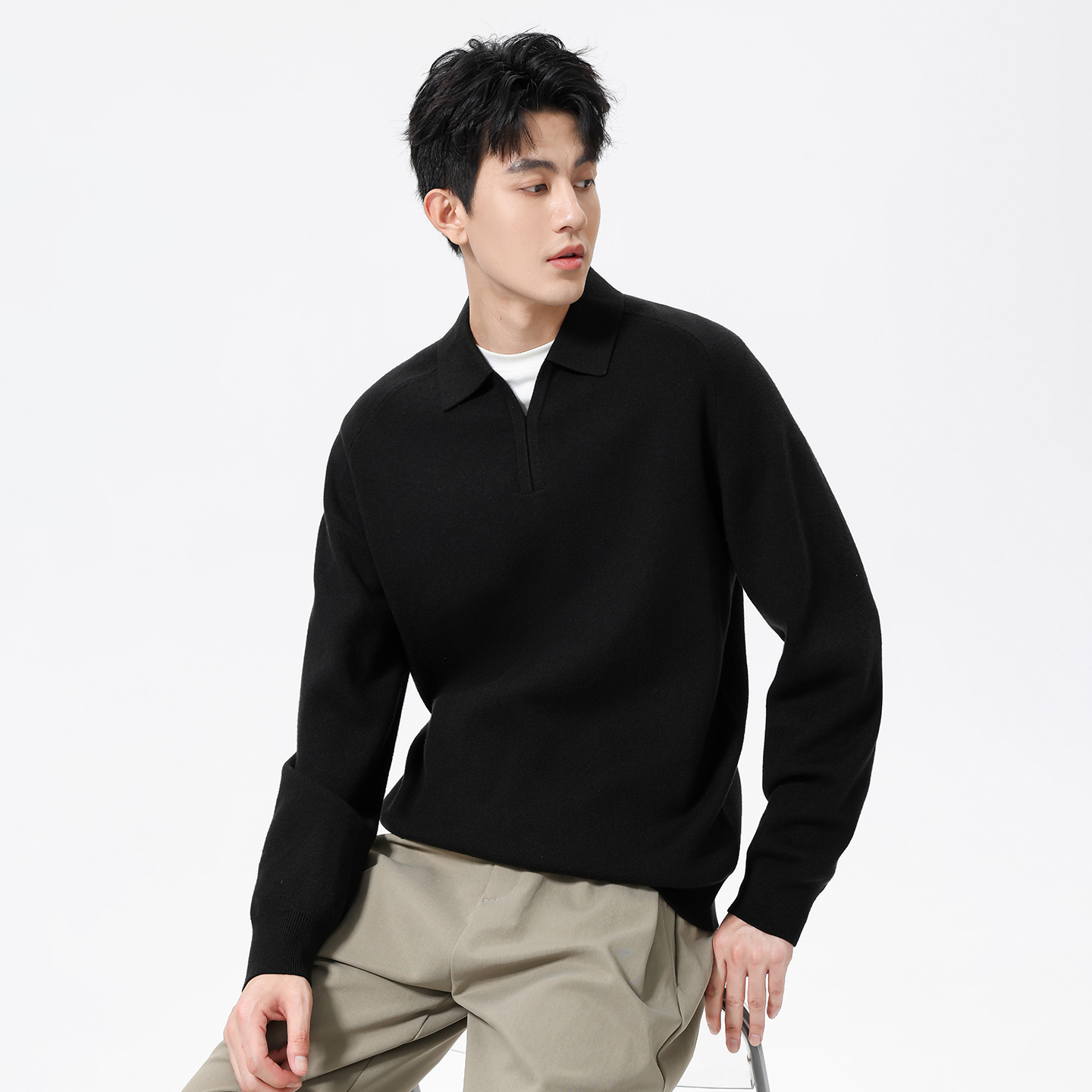上衣短款 秋季 打底针织衫 polo领长袖 小个子内搭毛衣女秋冬 2025新款