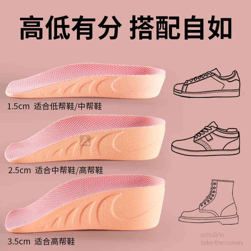 不累脚吸汗 女隐形内增高垫半垫增高垫足弓支撑运动鞋 增高鞋 垫男士
