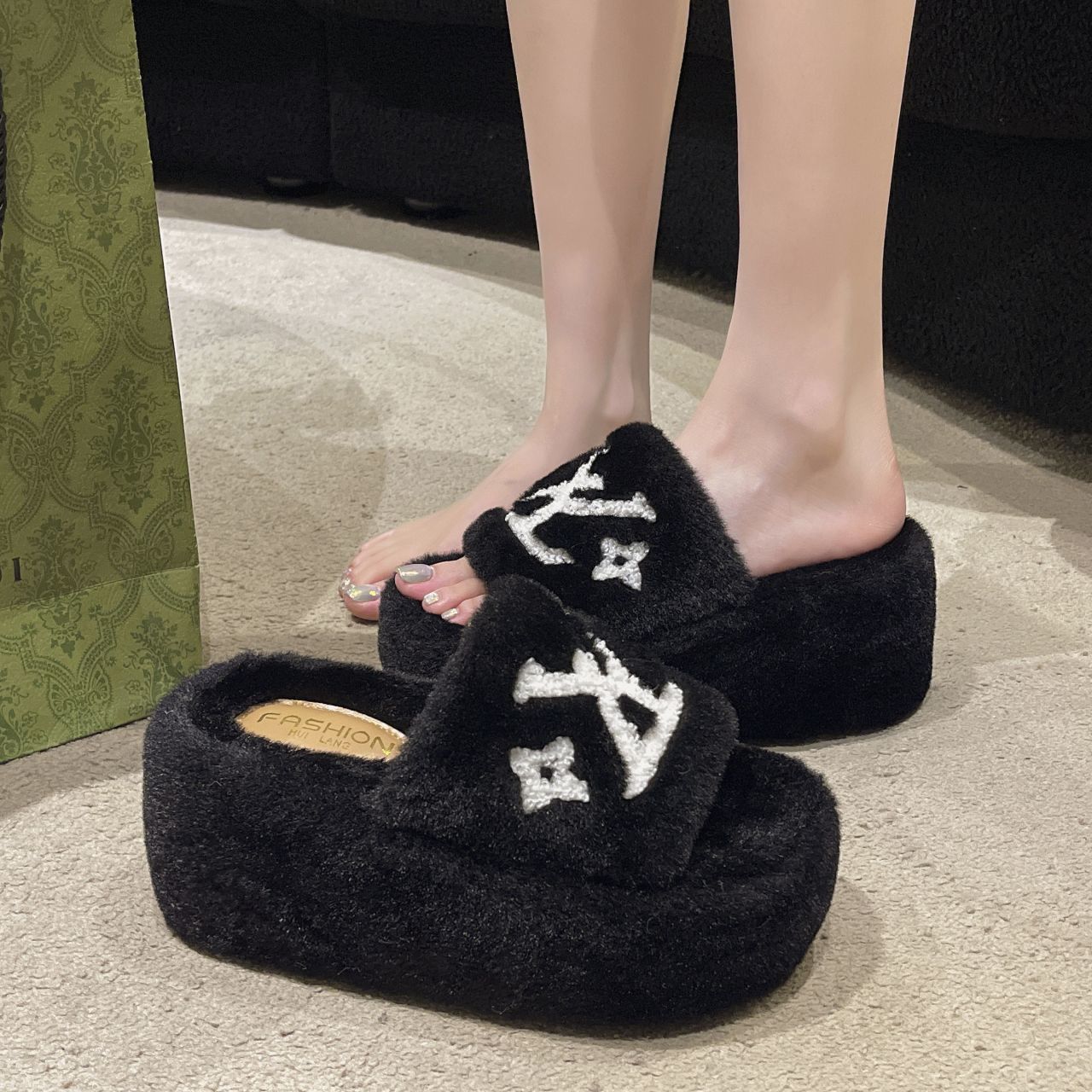 毛毛绒室内家居保暖鞋 厚底防滑2025新款 子居家 女士秋冬季 棉拖鞋