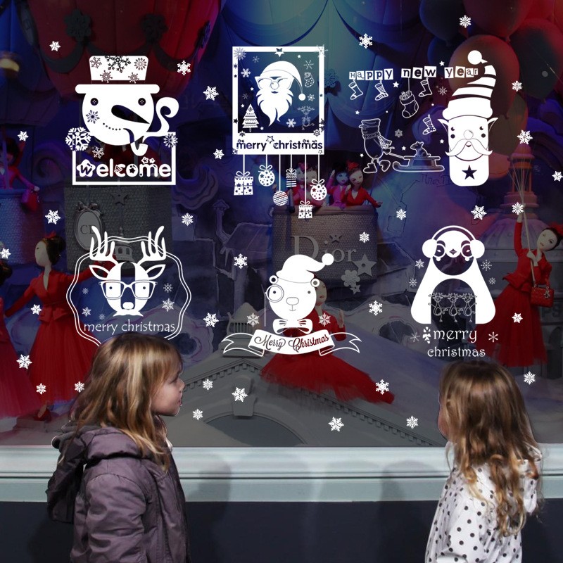 圣诞节装 饰用品店面玻璃墙贴店面场景节日窗户橱窗背景贴纸SK定制