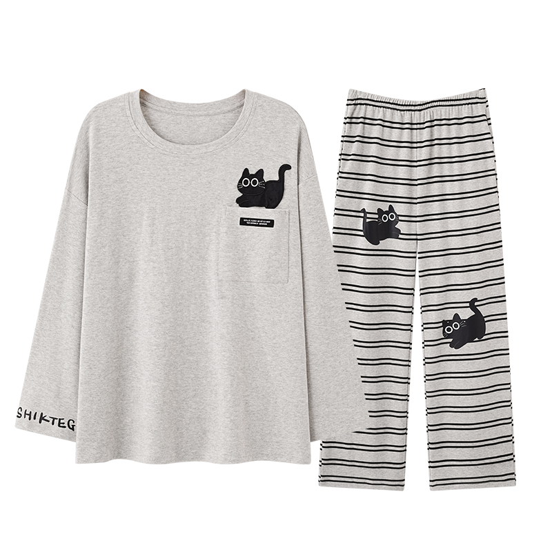 男女卡通可爱休闲家居服套装 2025新款 长袖 猫人纯棉情侣睡衣春秋季