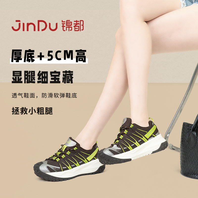 女厚底浅口系带休闲鞋 百搭单鞋 时尚 锦都2025新款